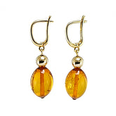 Cognac Amber Olive Dangle Earrings 14K Gold Plated