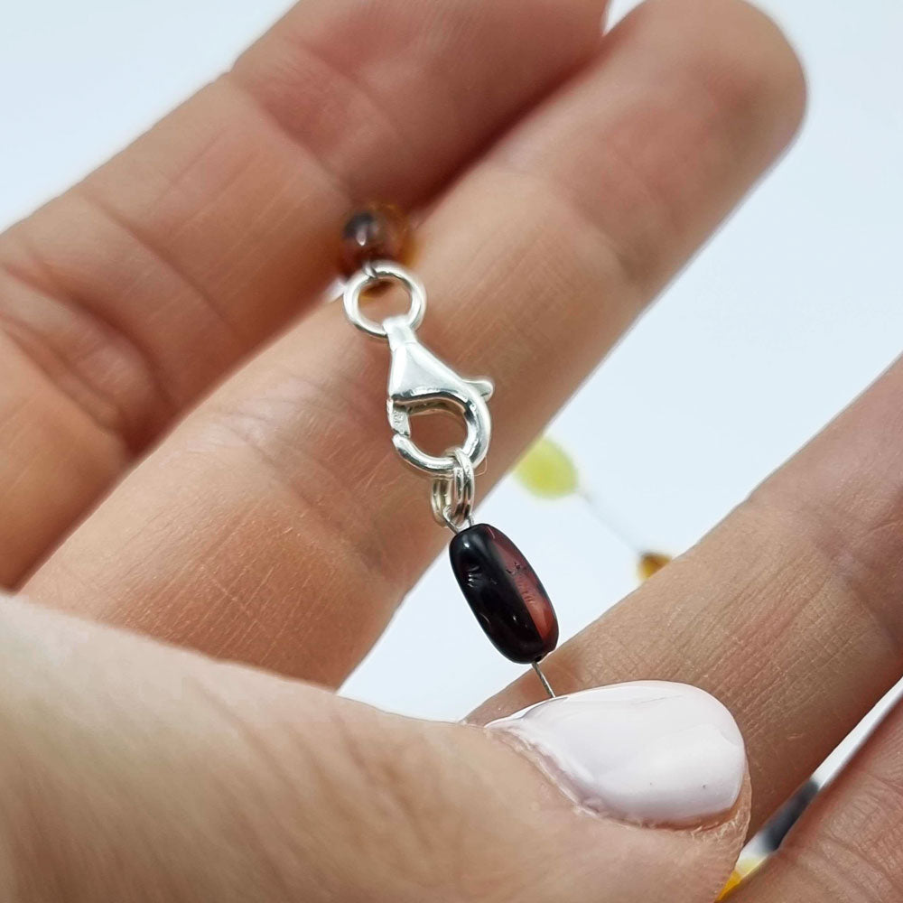 Bracelet with Baltic amber on stainless steel wires Cognac, cherry, lemon color Baltic amber small nuggets Stainless steel wires Silver 925 clasp 100% nickel and...