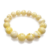 Baltic amber, royal milky color stretch bracelets. White color recycled Baltic amber round beads Elastic silicone Beads size: 14 mm | ~0,55 inches; Bracelet's weight ~25.93 grams- €680,00