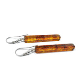 Dark Amber Rectangular Dangle Earrings Sterling Silver