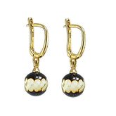 SPARKLING ELEGANCE Two Tone Amber Faceted Round Dangle Earrings 14 Gold Plated