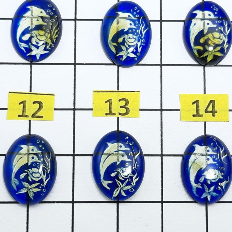 Natural Caribbean blue color bottom engraved dolphins amber oval shape cabochons