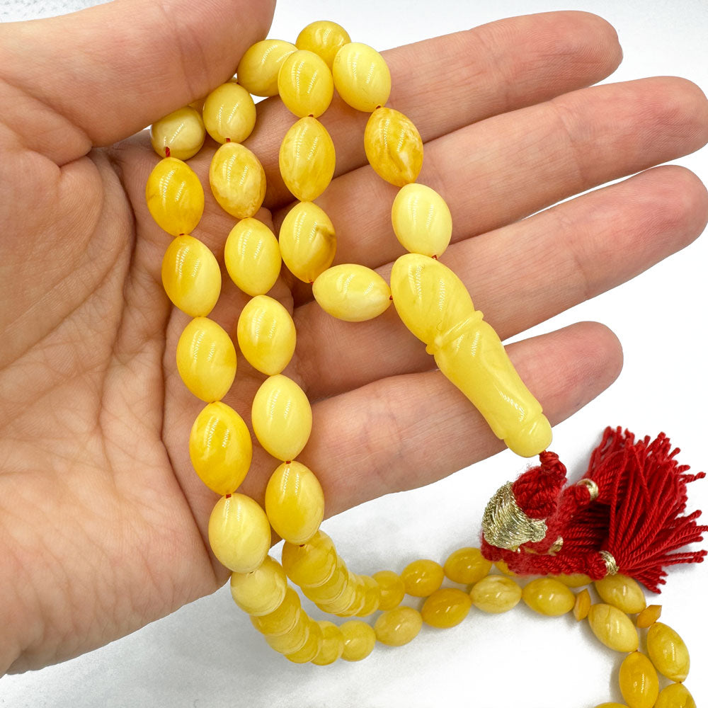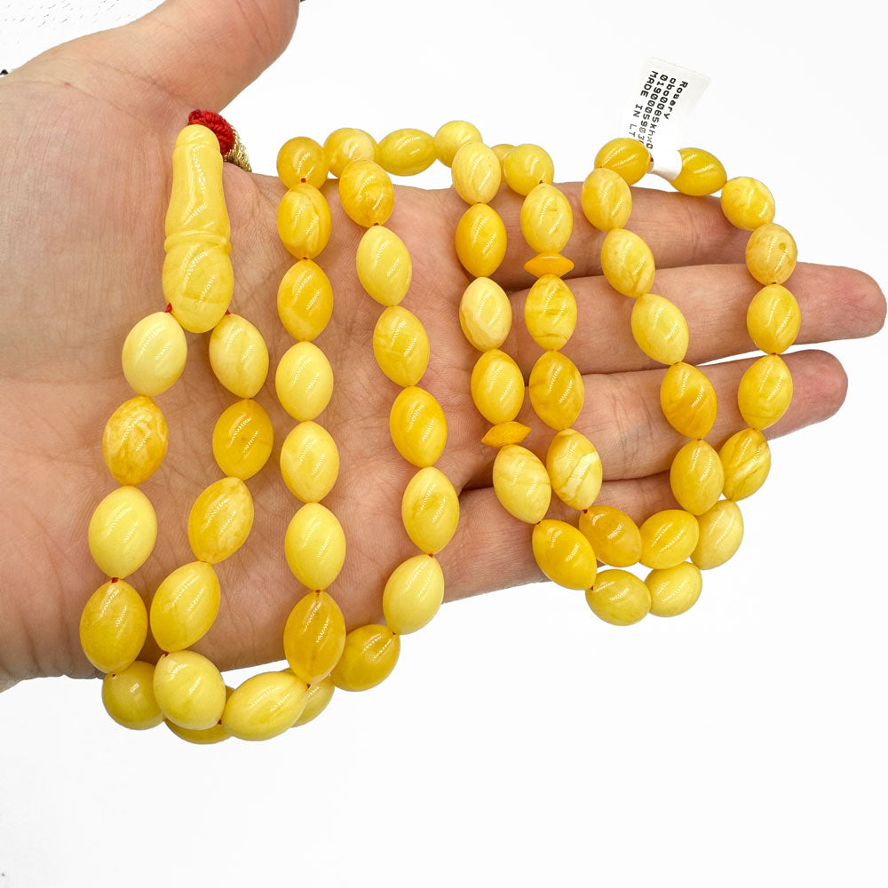 Natural Baltic Amber Butterscotch/Yellow Color Olive Shape 8.5 mm Islamic Prayer 66 beads