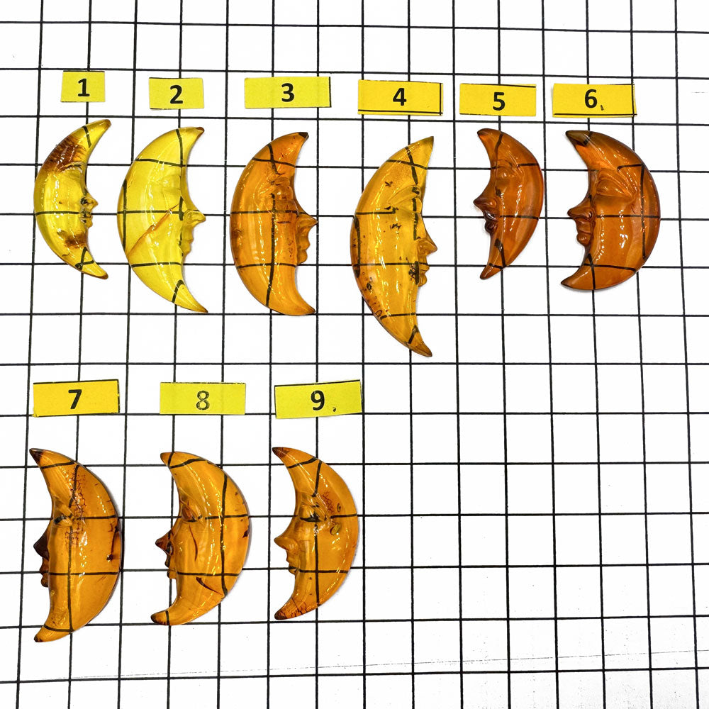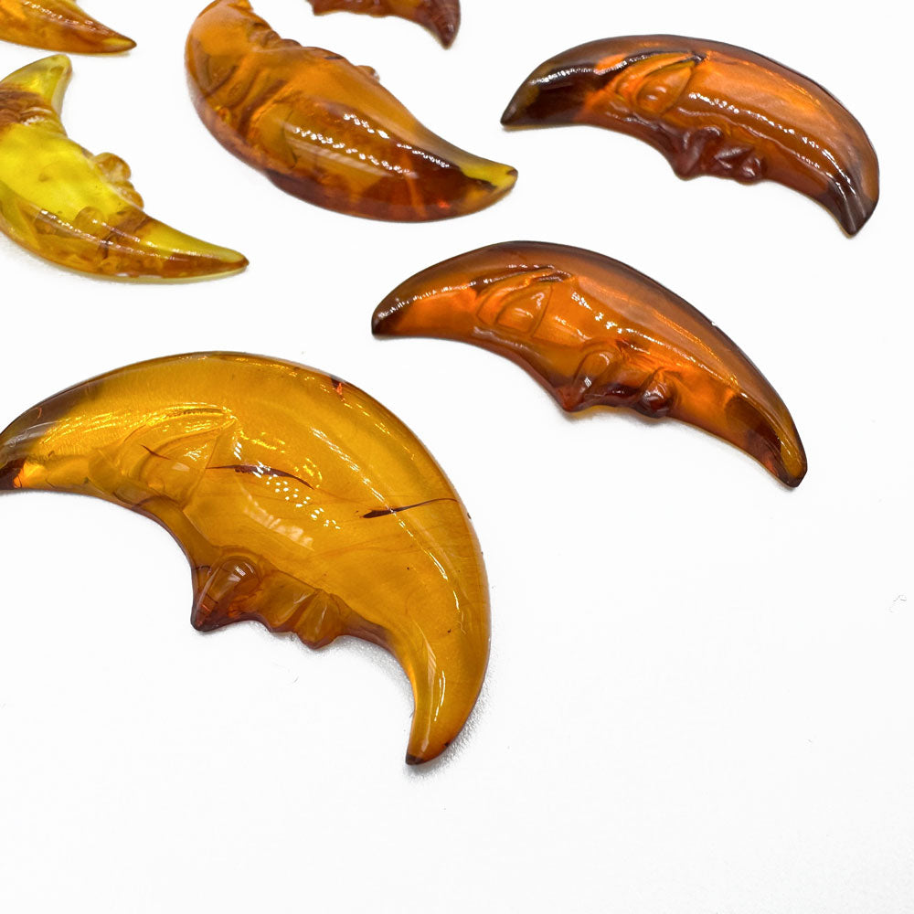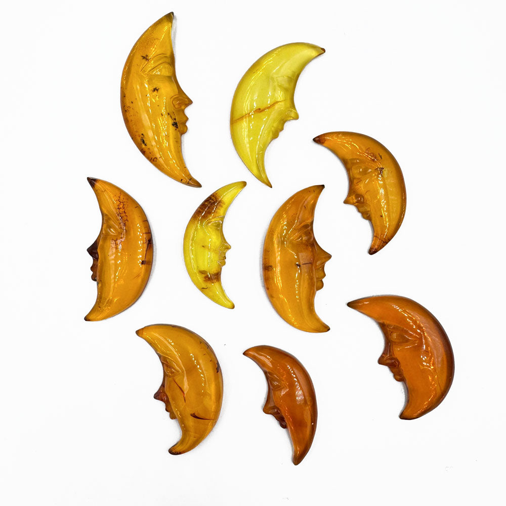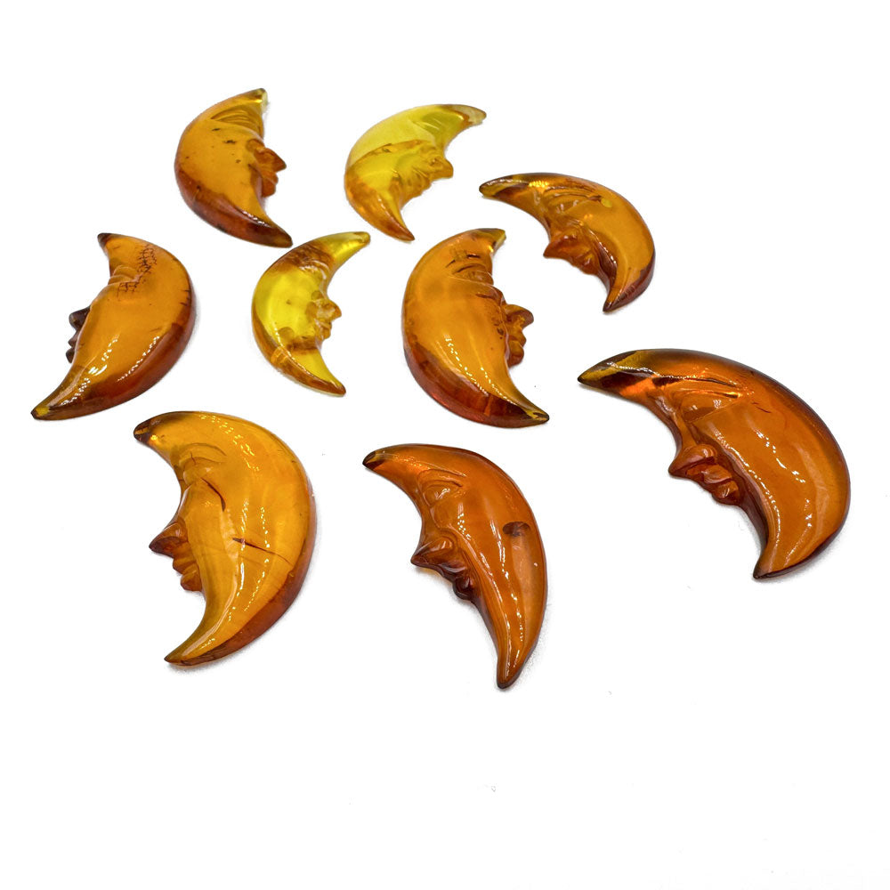 Cognac Amber Carved Moon Cabochons