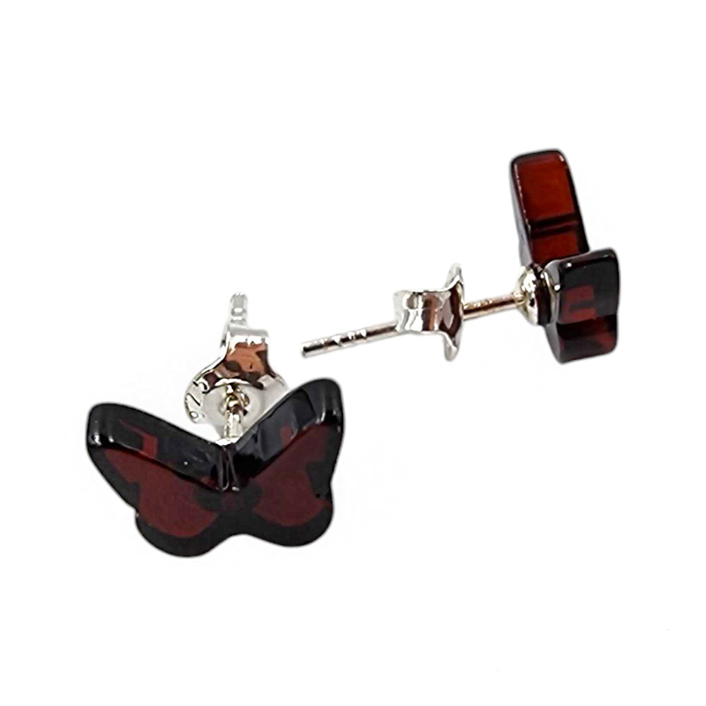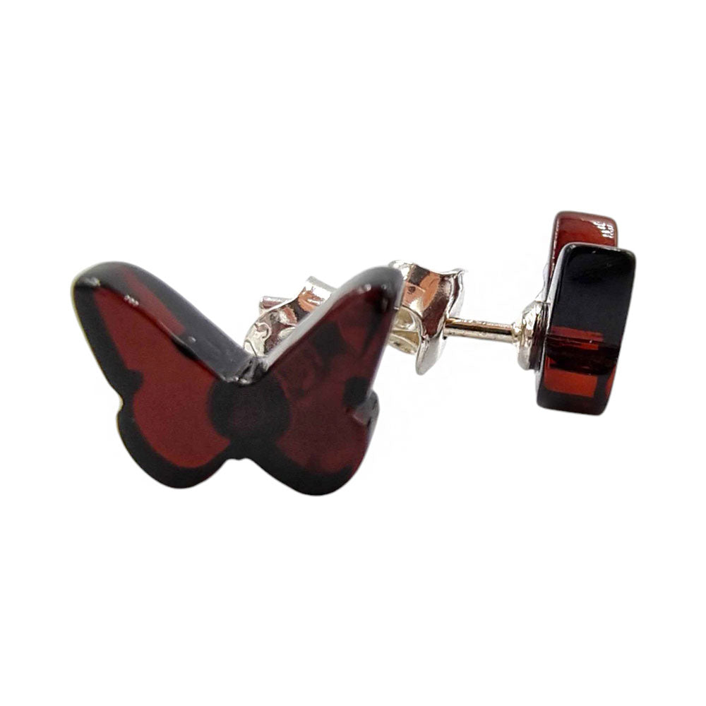Cherry Amber Butterfly Stud Earrings Sterling Silver