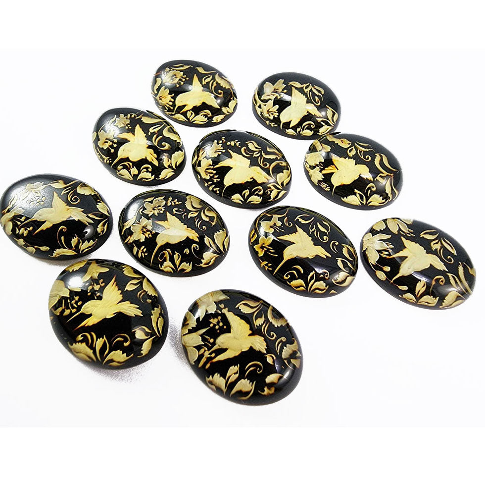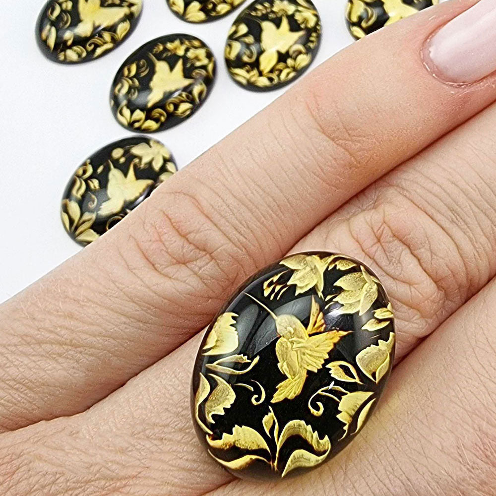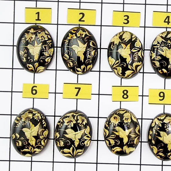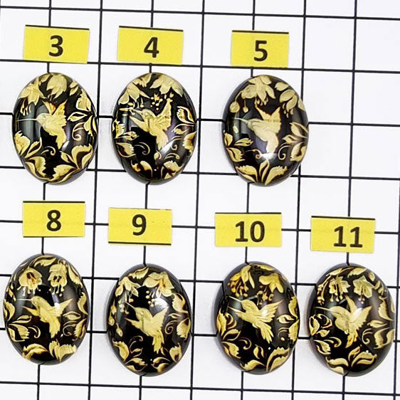 Intaglio Engraved Hummingbird Oval Shape Cherry Color Bottom Cabochon