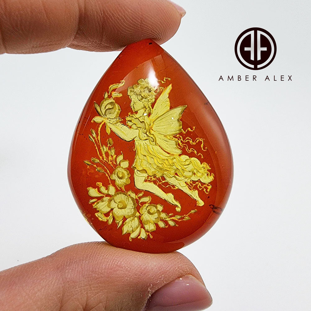 Natural Baltic cherry color bottom engraved Fairy drop shape cabochons