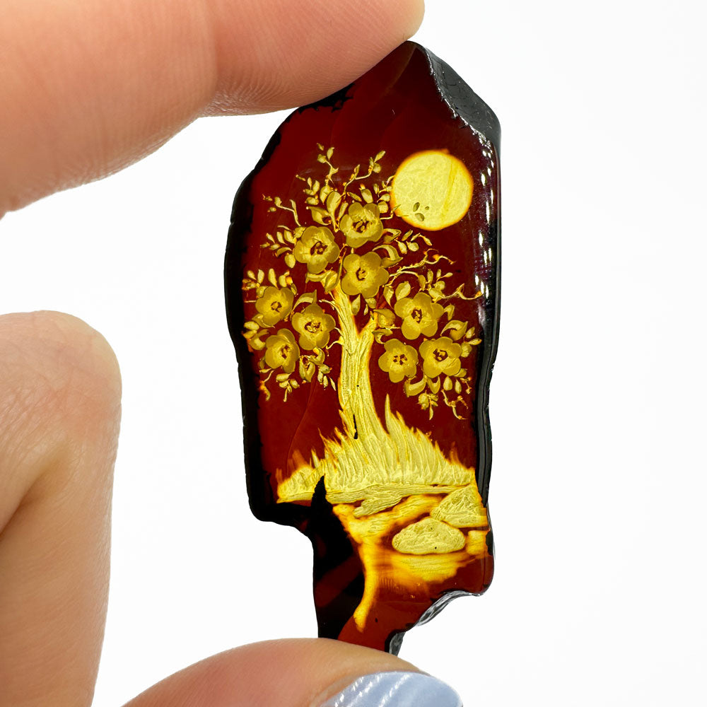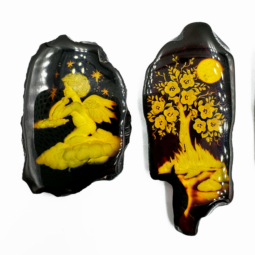 Natural Baltic cheery color bottom engraved amber free shape slabs