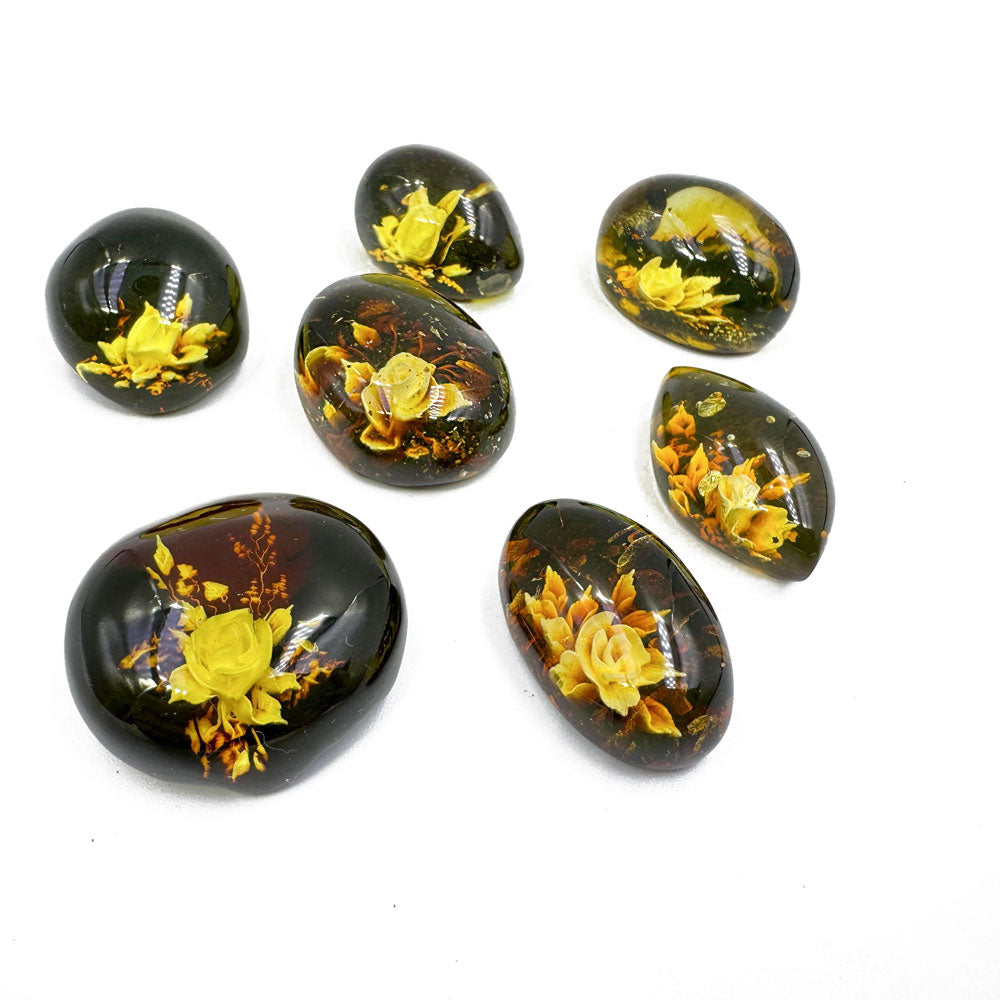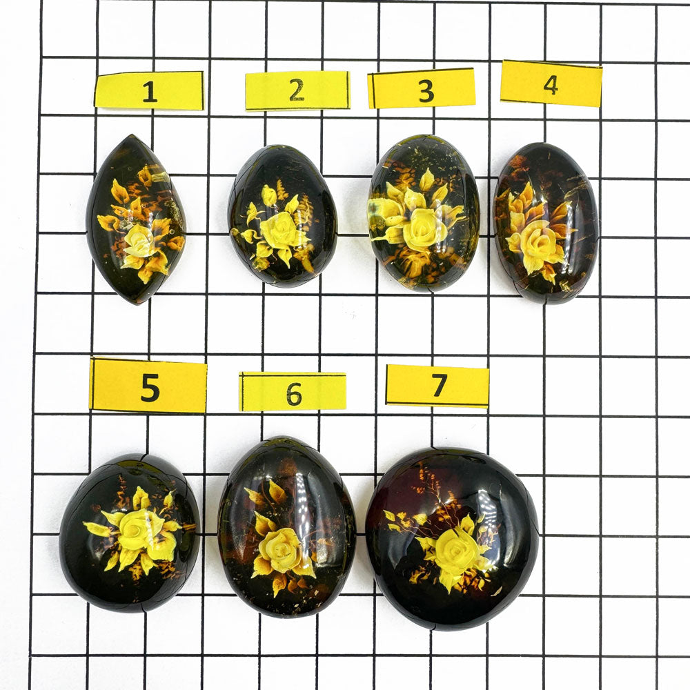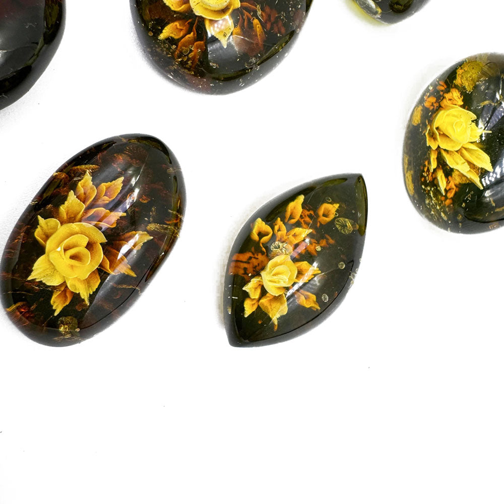Natural Baltic cherry color bottom engraved roses amber oval shape cabochons