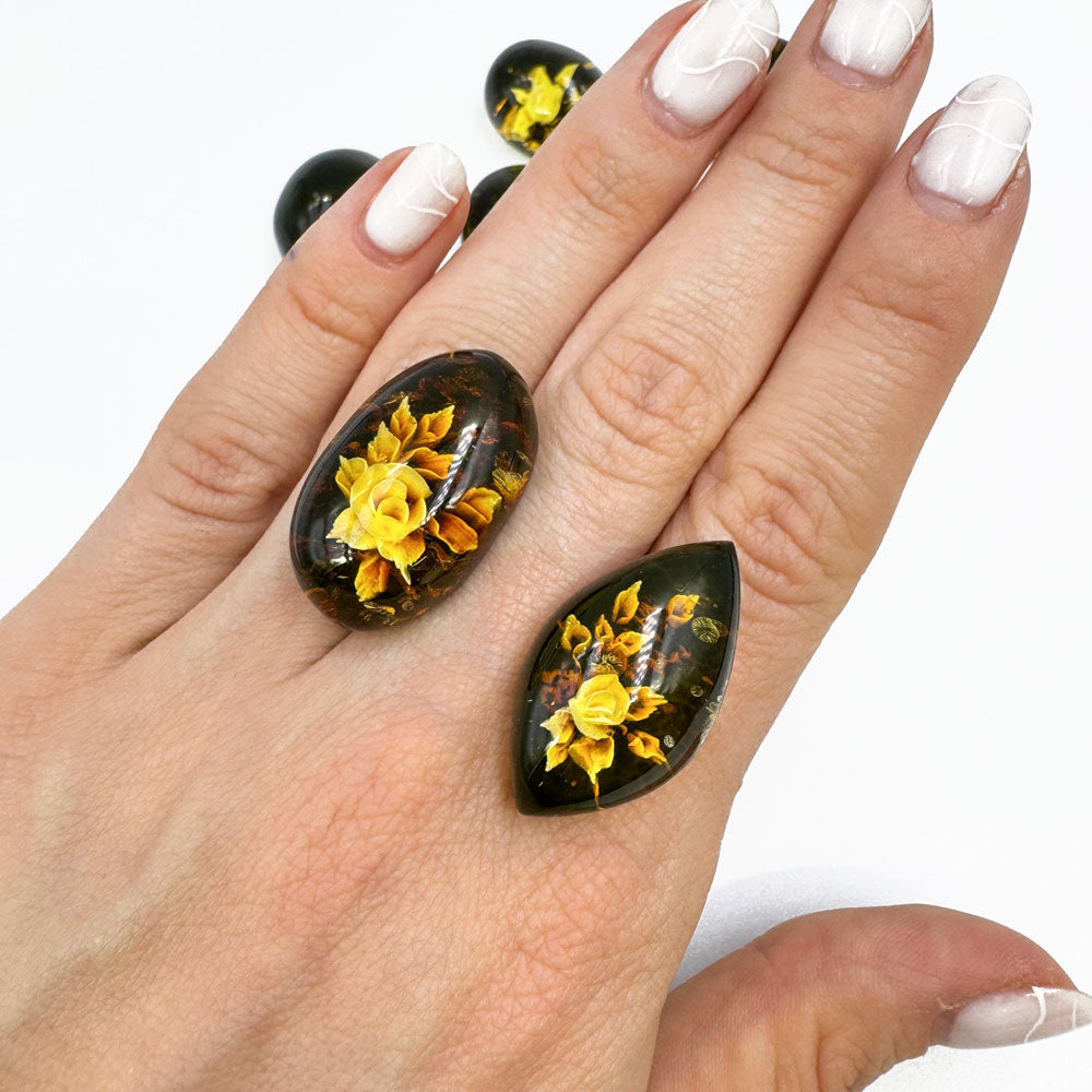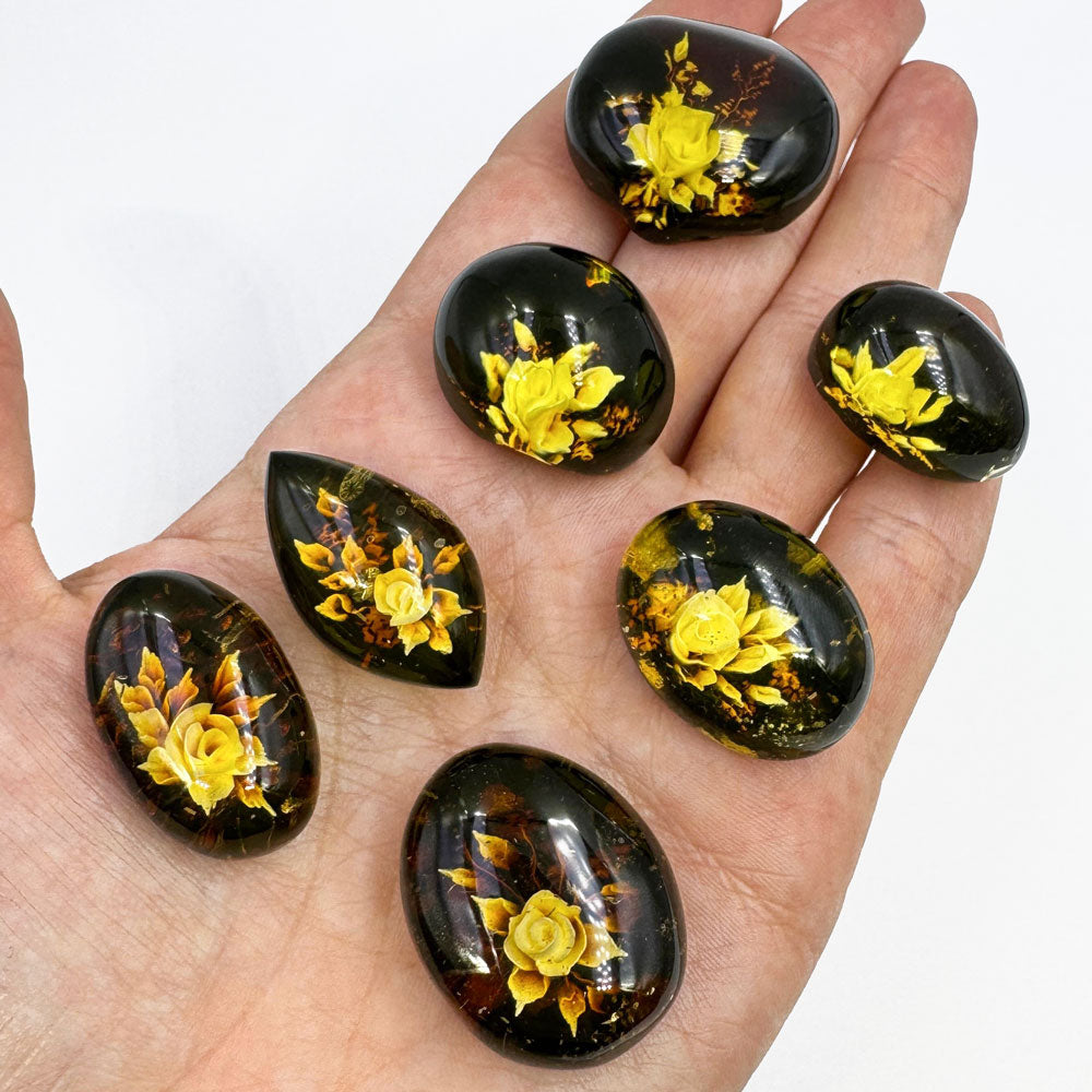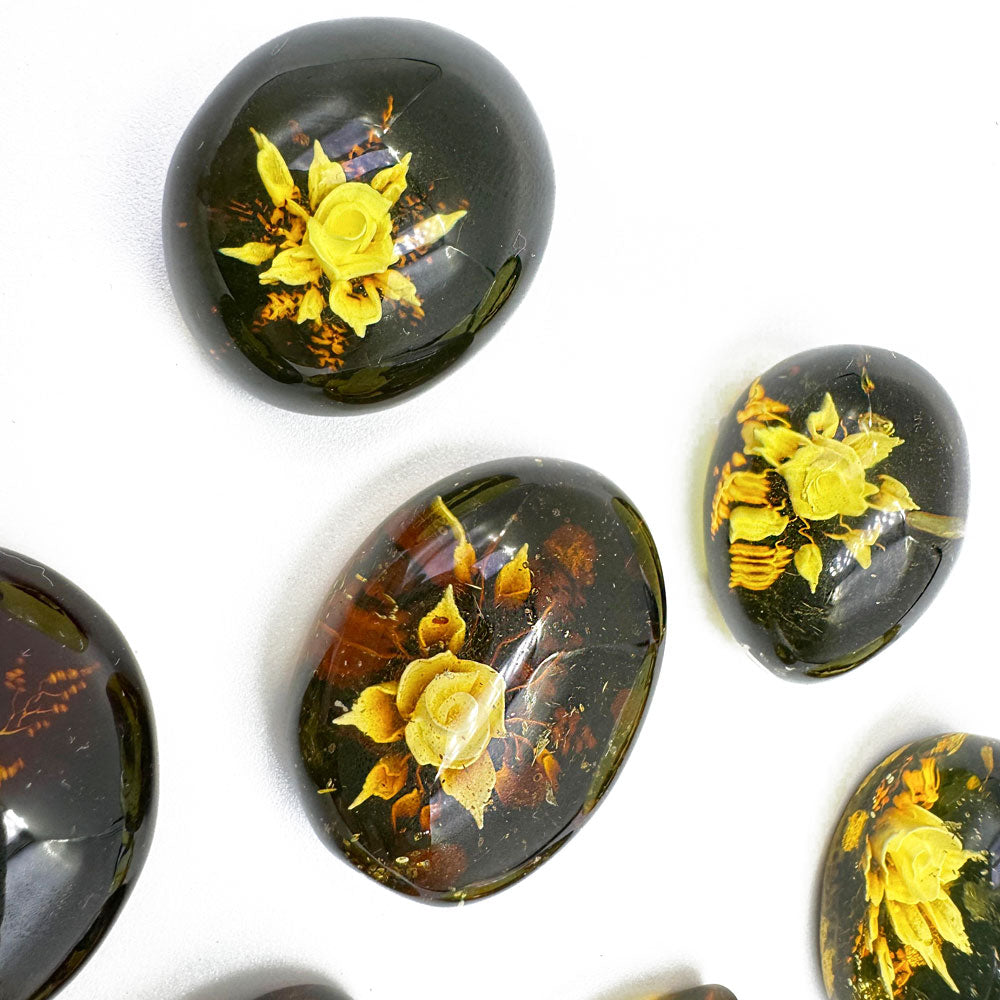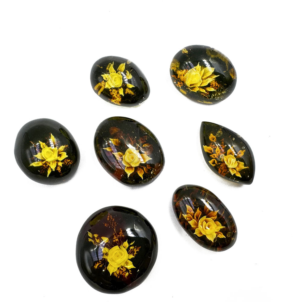 Natural Baltic cherry color bottom engraved roses amber oval shape cabochons