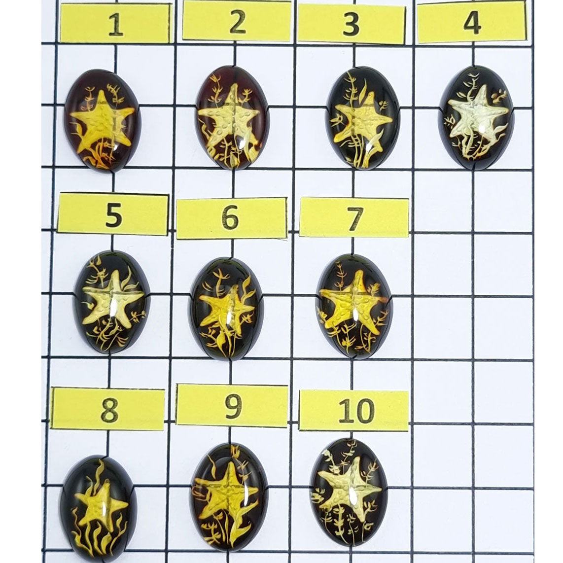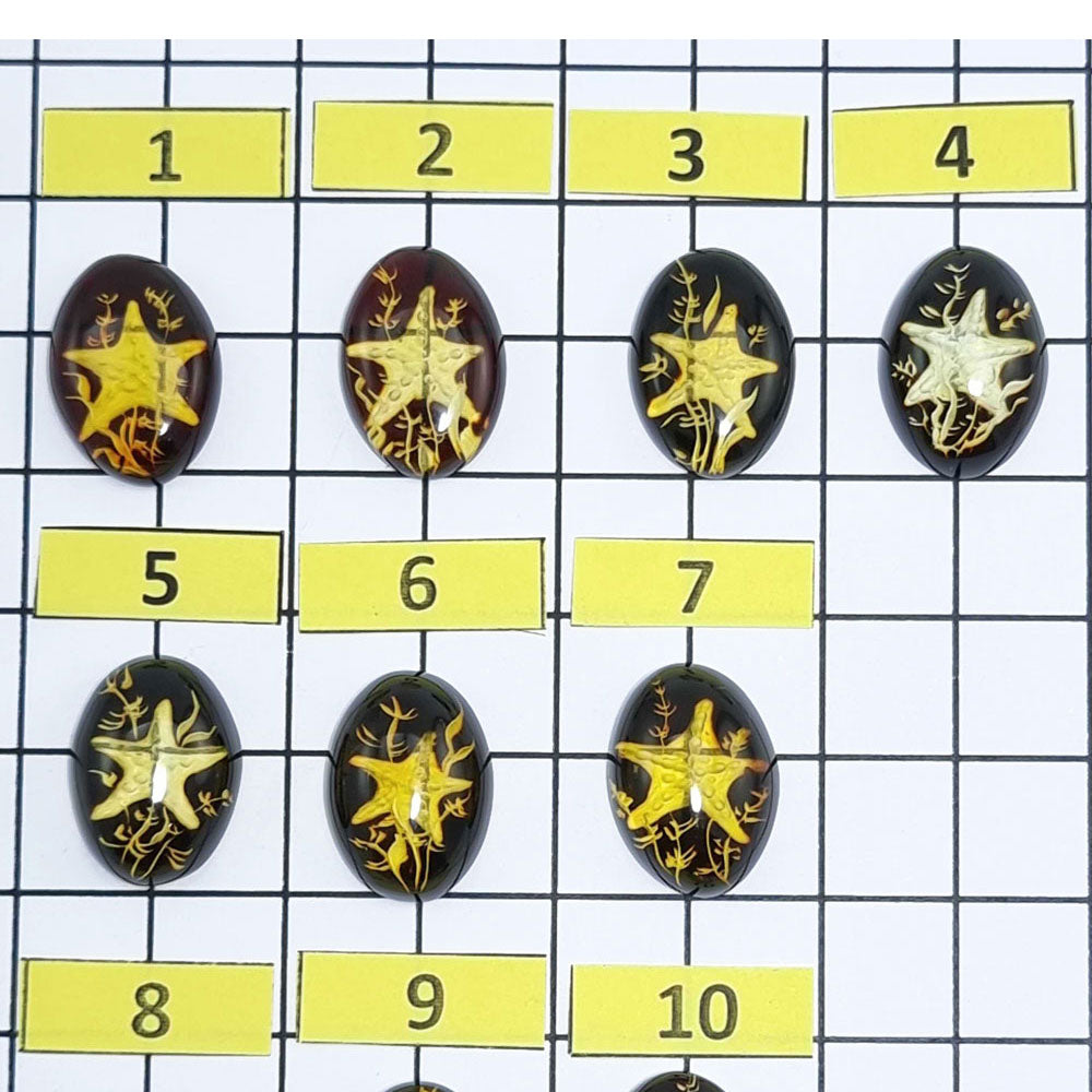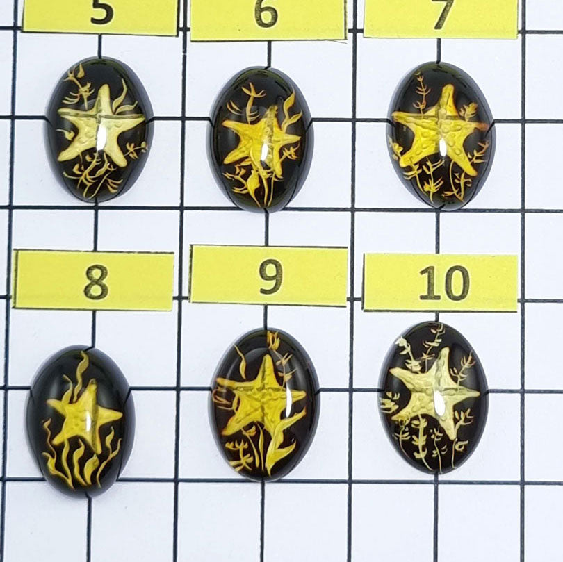 Engraved Starfish Oval Shape Cherry Color Bottom Calibrated Cabochon