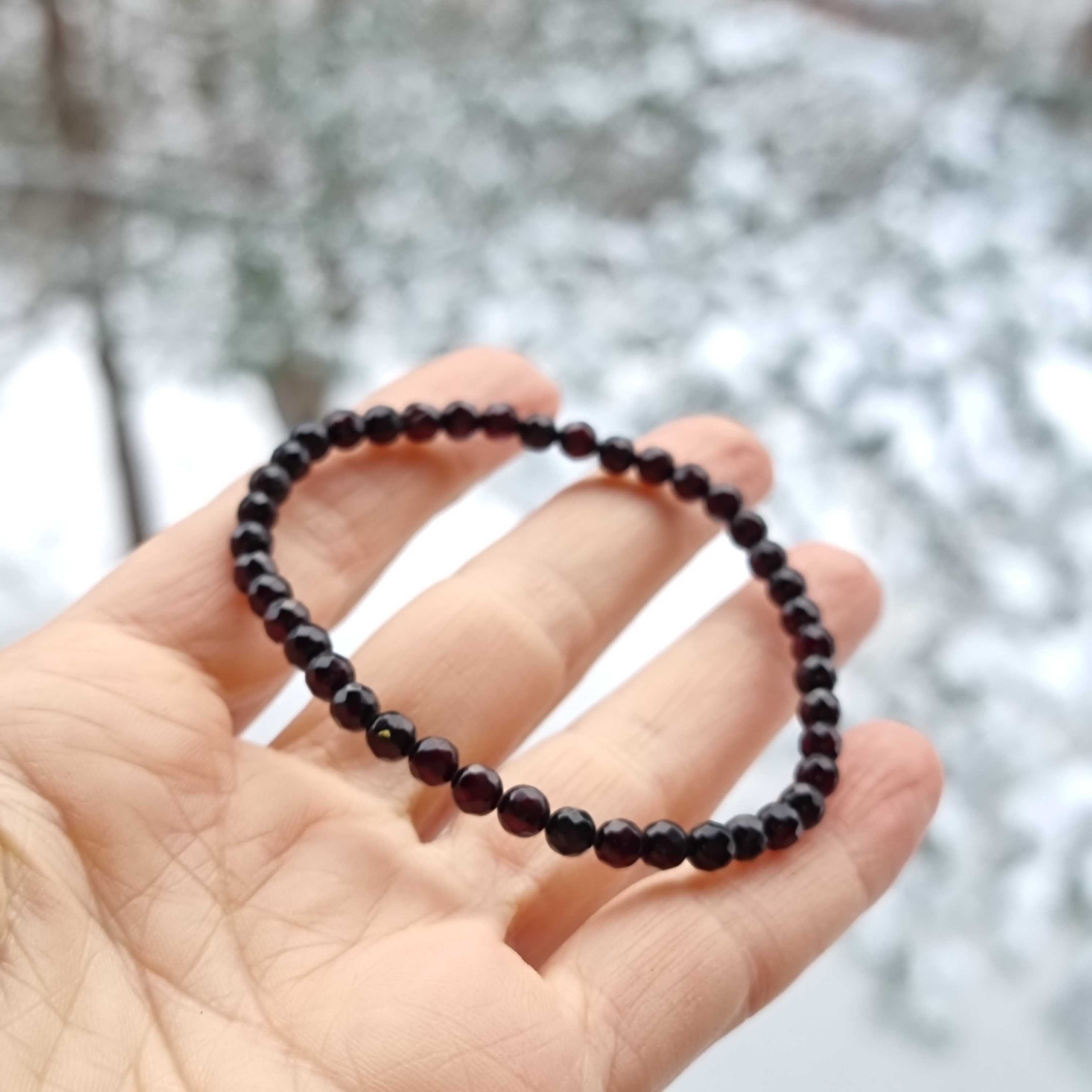 Baltic amber beads stretch bracelet. Cherry color faceted round beads Elastic silicone Beads size: 5 mm | ~0,2 inches Weight: ~3 grams