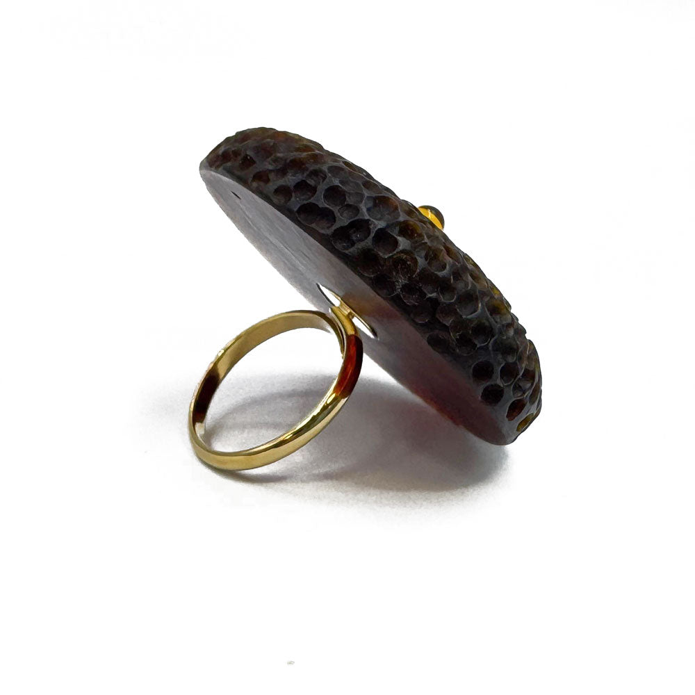 Baltic recycled amber and 14k Gold Plated adjustable ring.