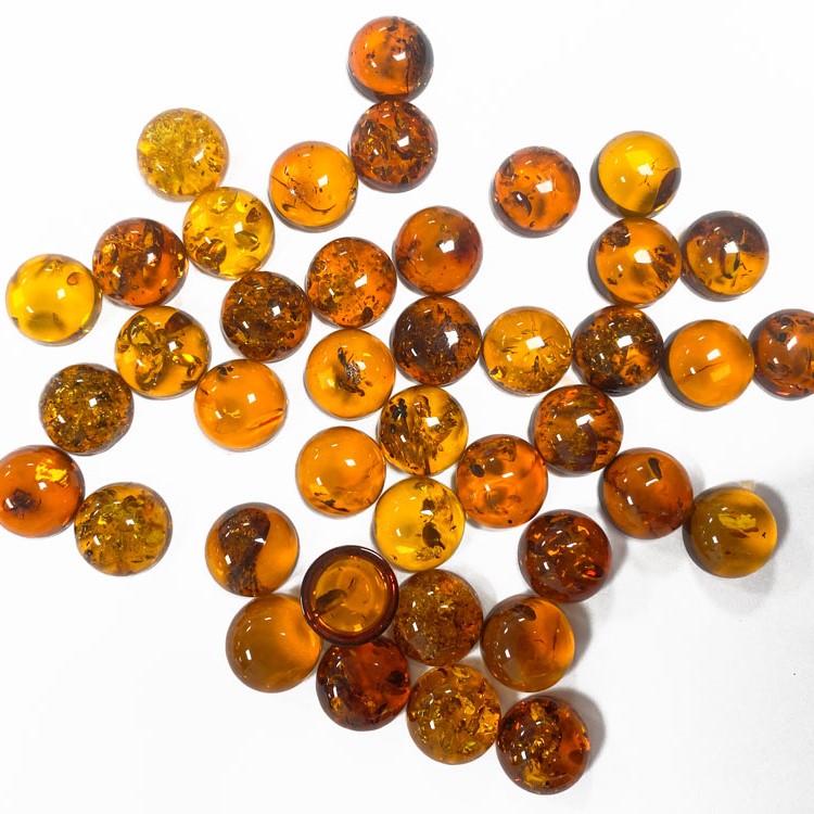 Natural Baltic cognac color round shape cabochons Genuine Baltic amber Flat bottom calibrated round shape Cognac color cabochon Various sizes The price given per unit...