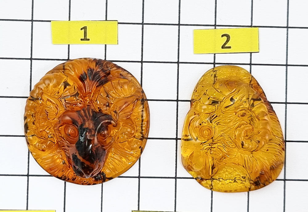 Natural Baltic Amber Carved Aries and Goat Cognac Color Cabochons