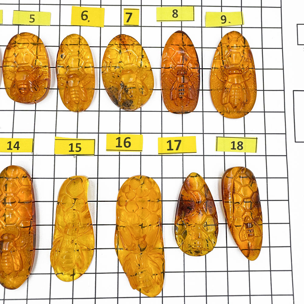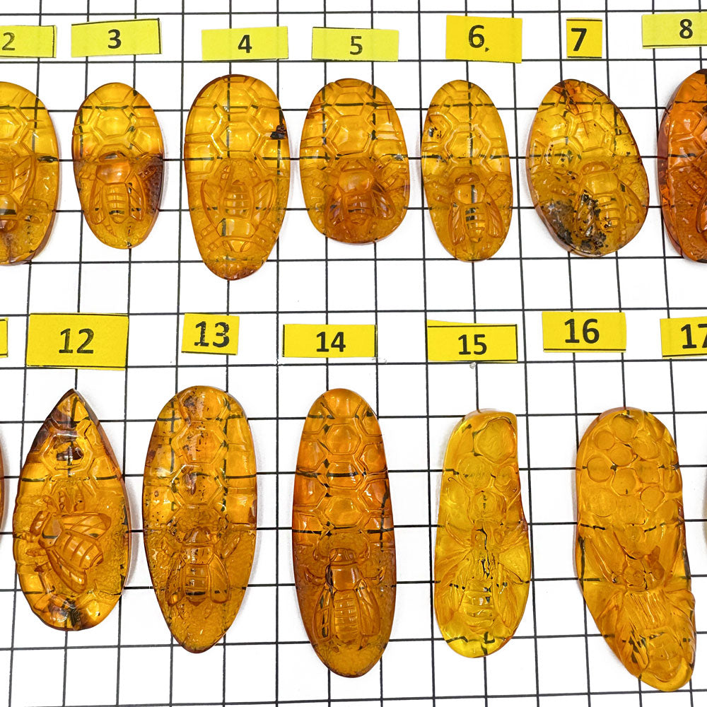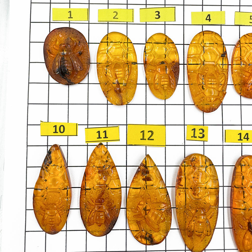 Natural Baltic Amber Carved Bee On Honeycomb Cognac Color Cabochon Genuine Baltic amber Carved Bee on honeycomb shape cabochons Honey color The price given per...