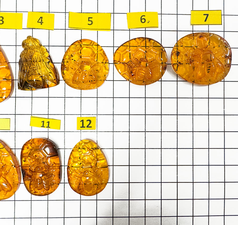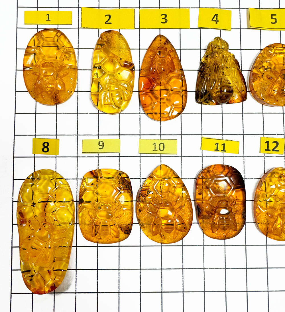 Natural Baltic Amber Carved Bee On Honeycomb Cognac Color Cabochon