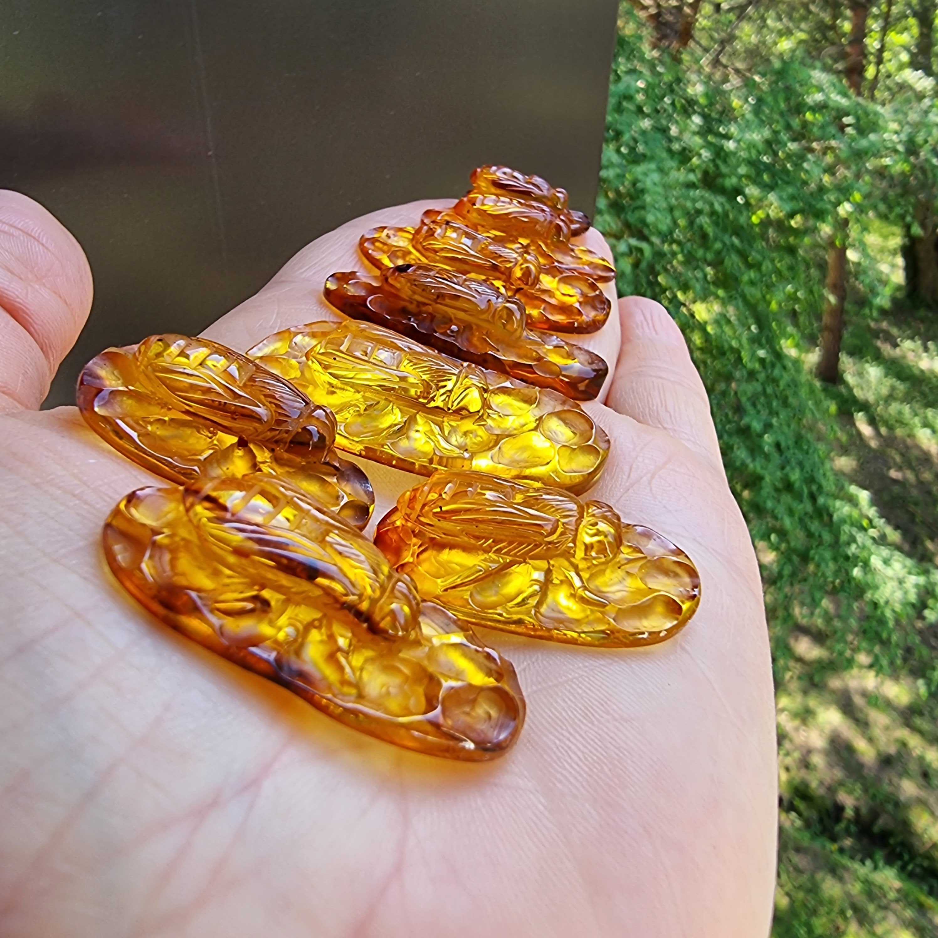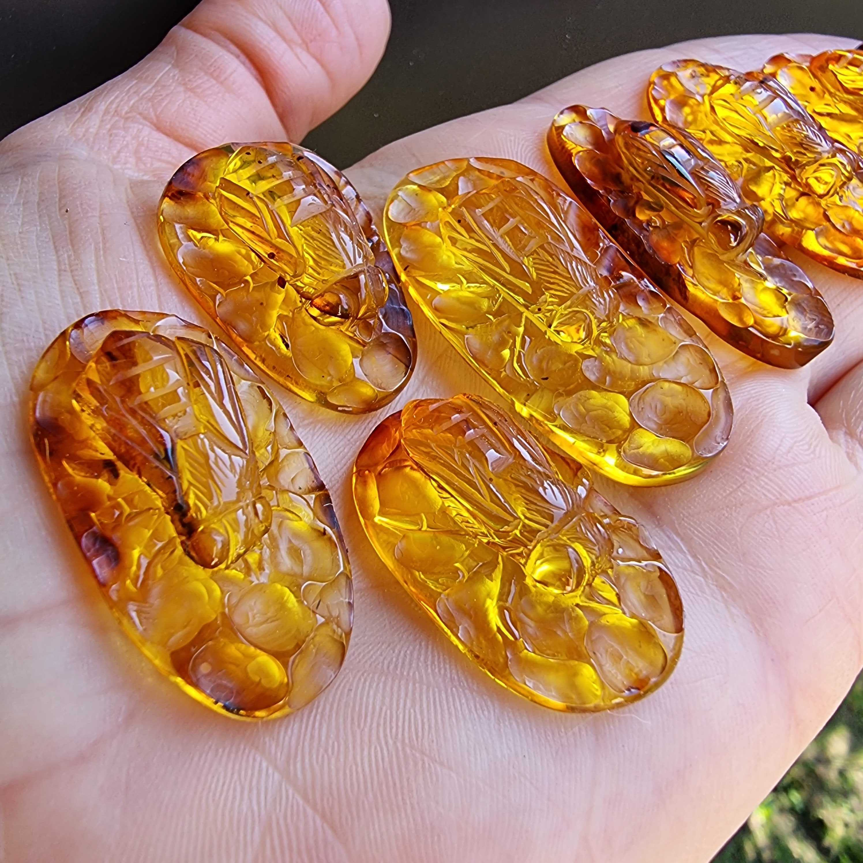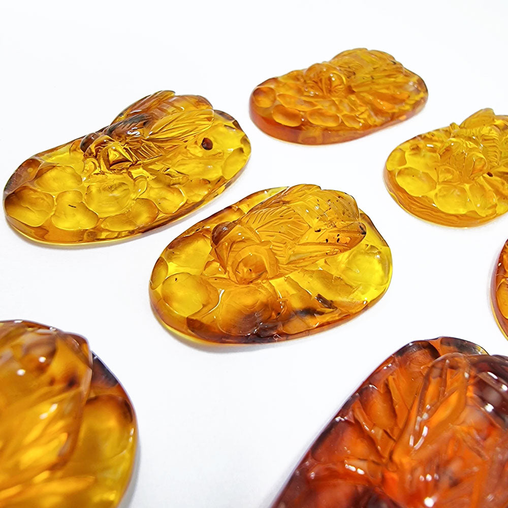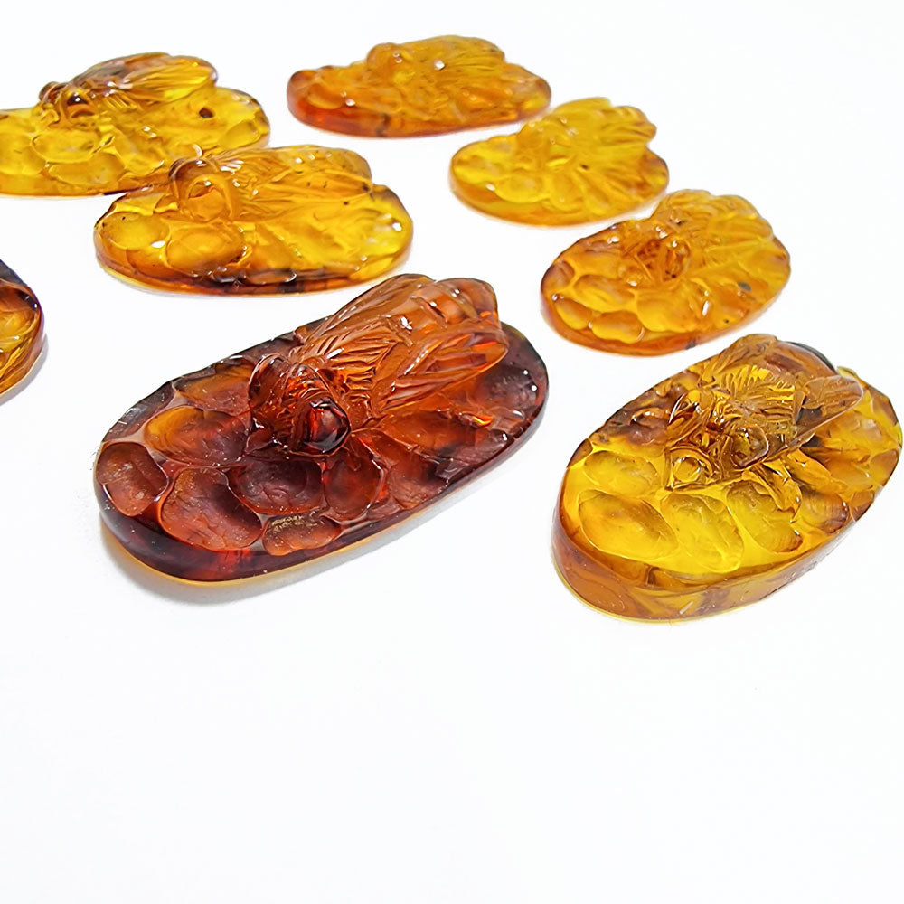 Natural Baltic Amber Carved Bee On Honeycomb Cognac Color Cabochon Genuine Baltic amber Carved Bee on honeycomb shape cabochons Honey color The price given per...