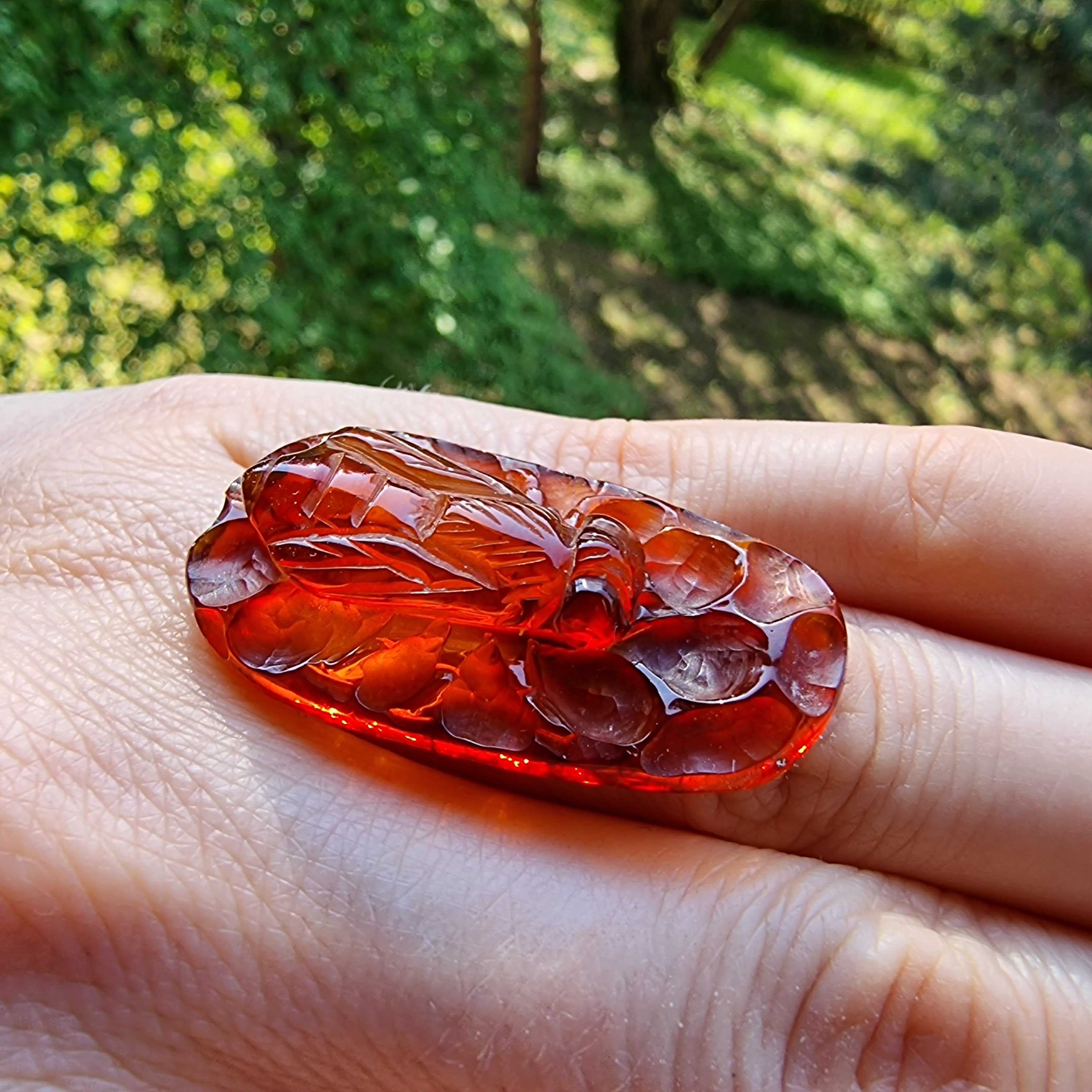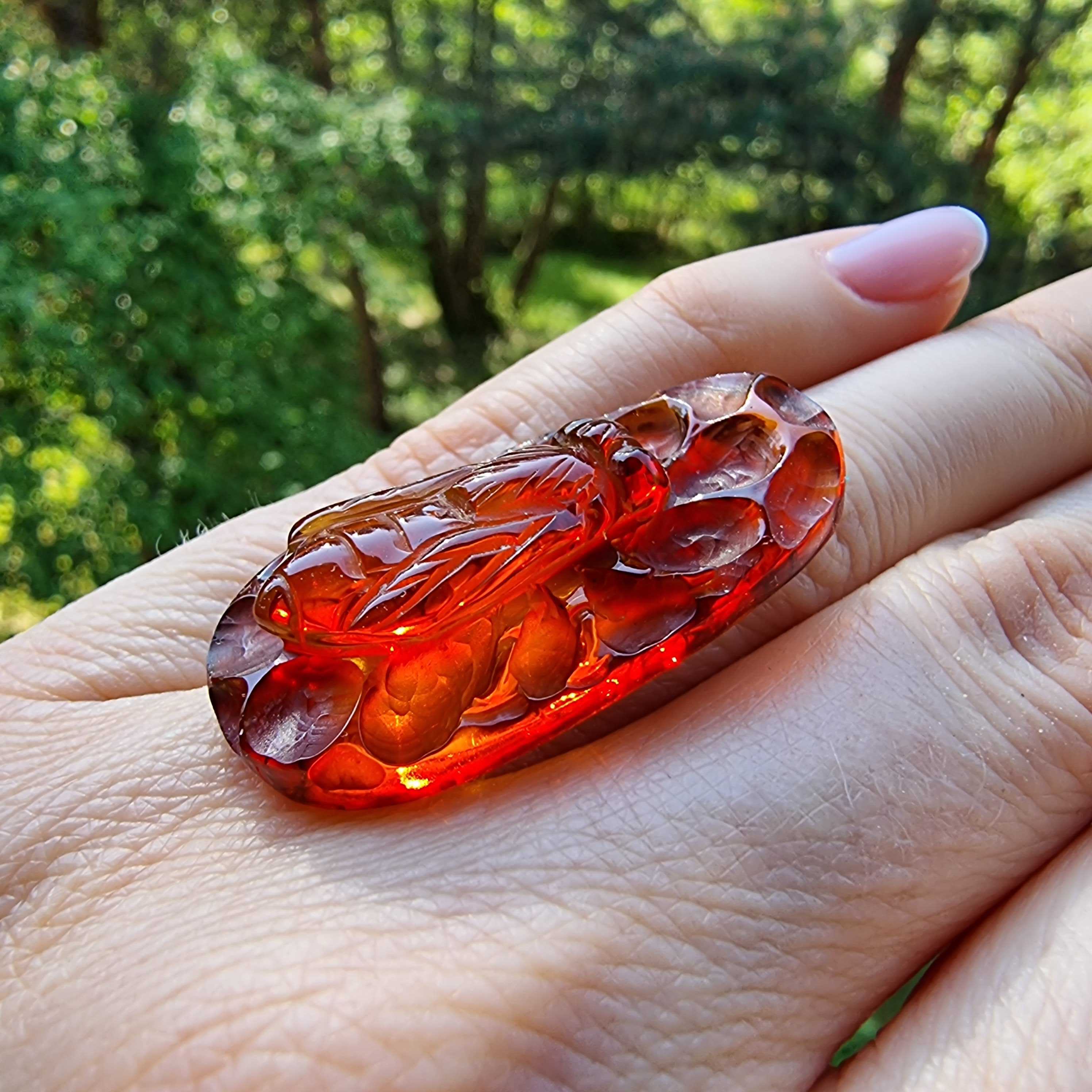 Natural Baltic Amber Carved Bee On Honeycomb Cognac Color Cabochon