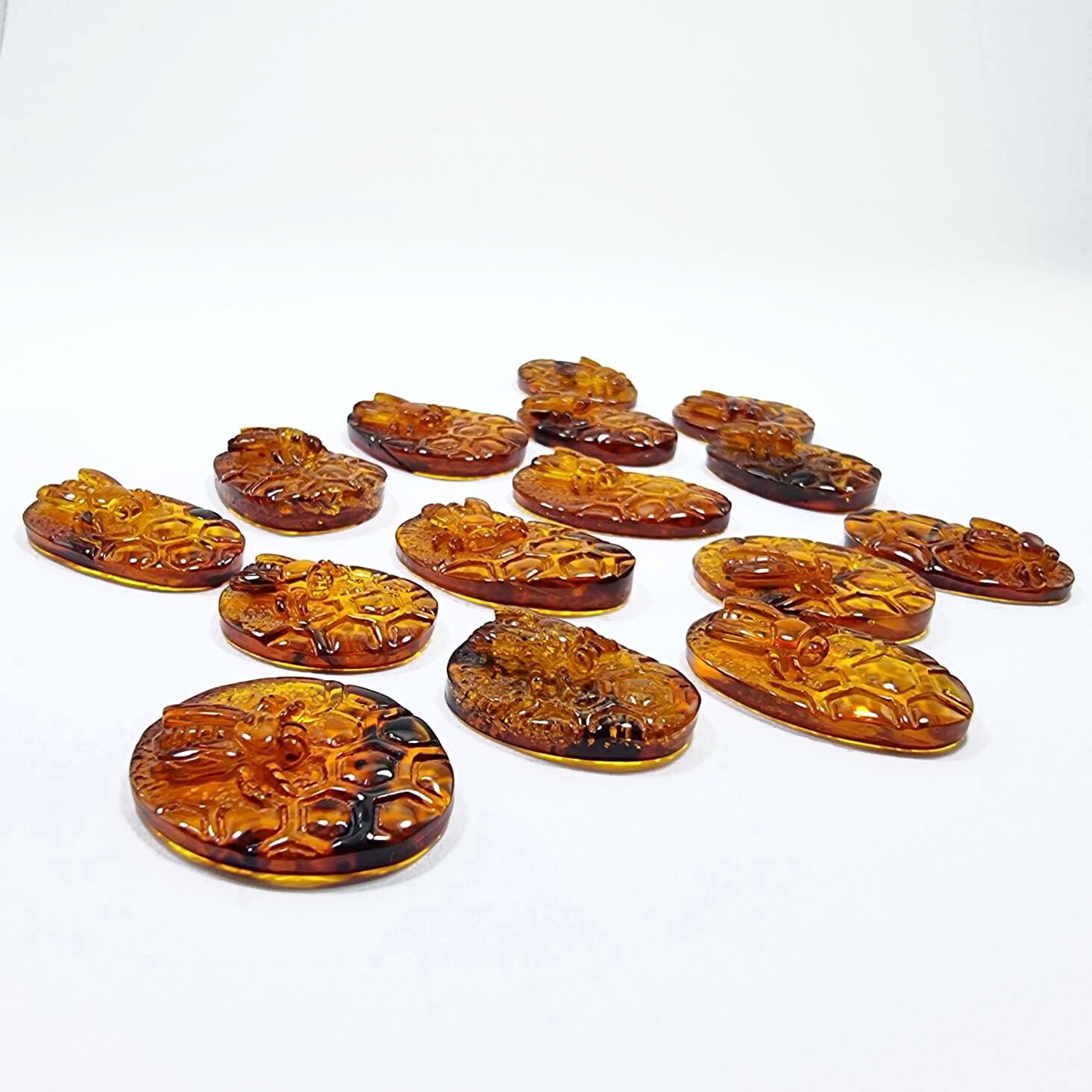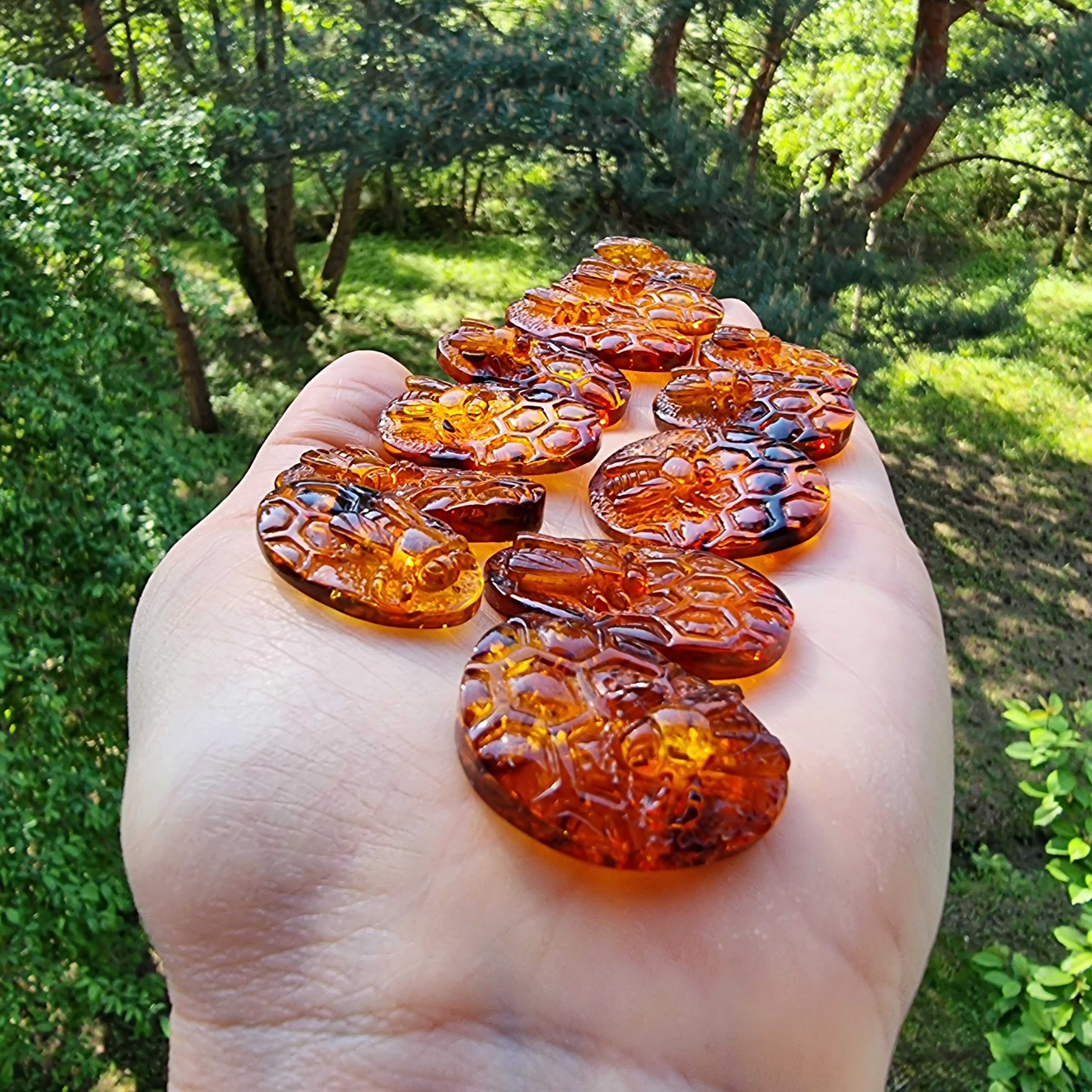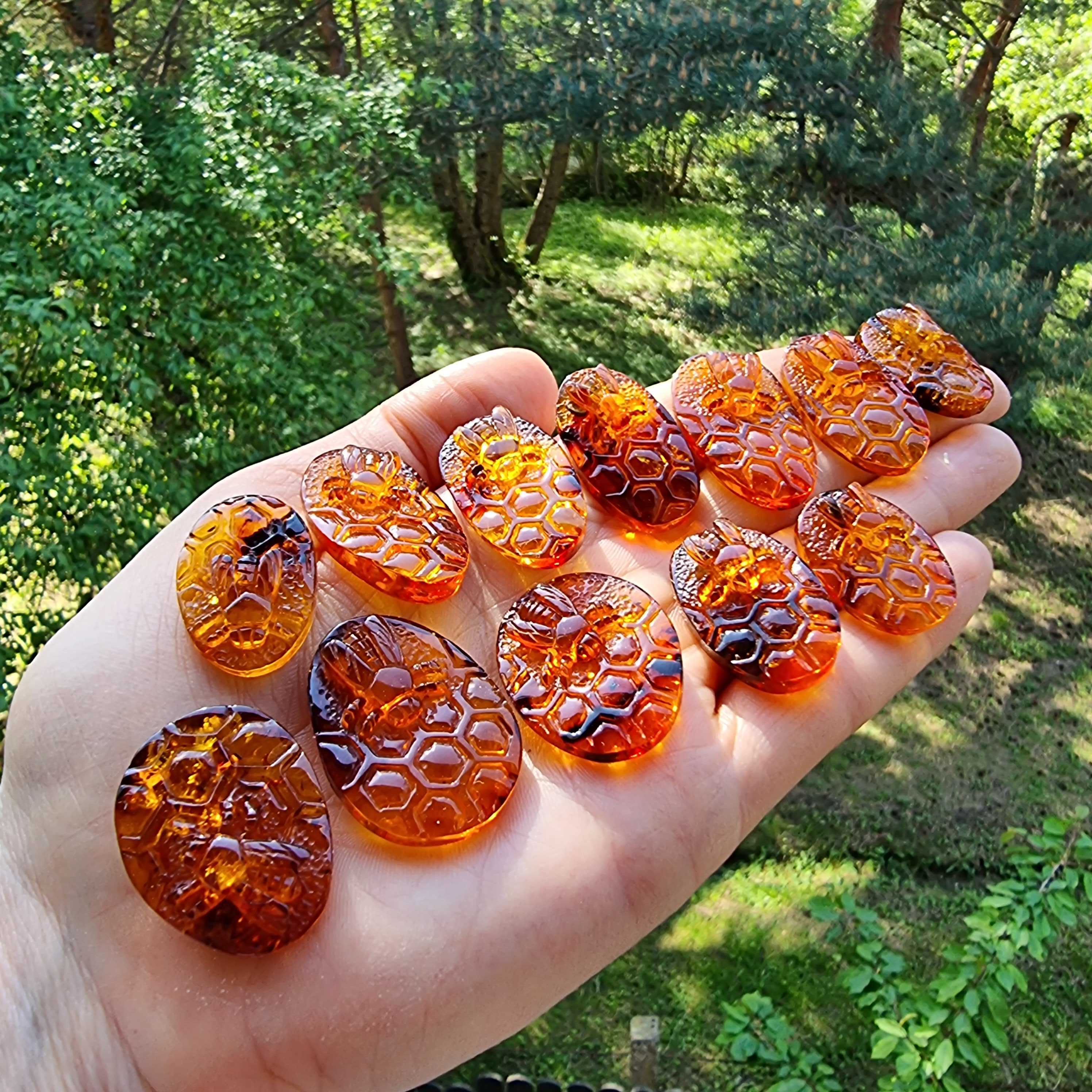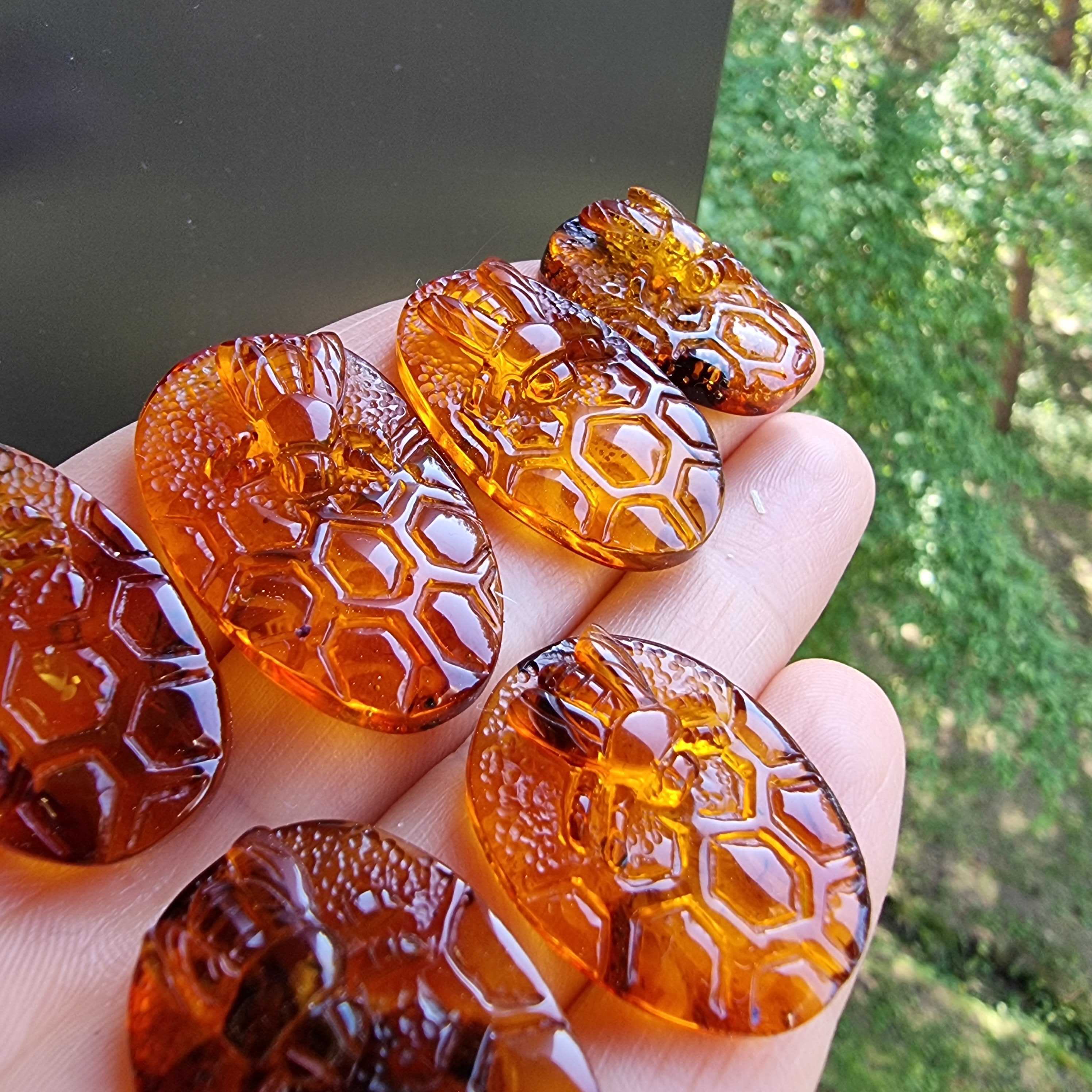 Natural Baltic Amber Carved Bee On Honeycomb Cognac Color Cabochon Genuine Baltic amber Carved Bee on honeycomb shape cabochons Honey color The price given per...