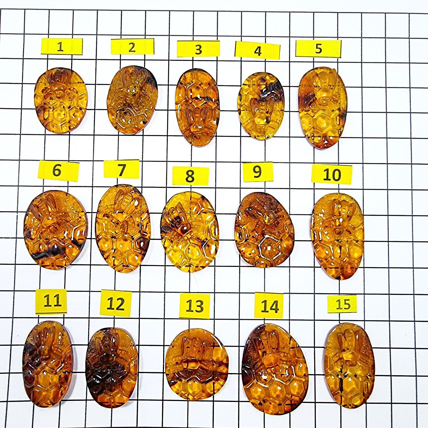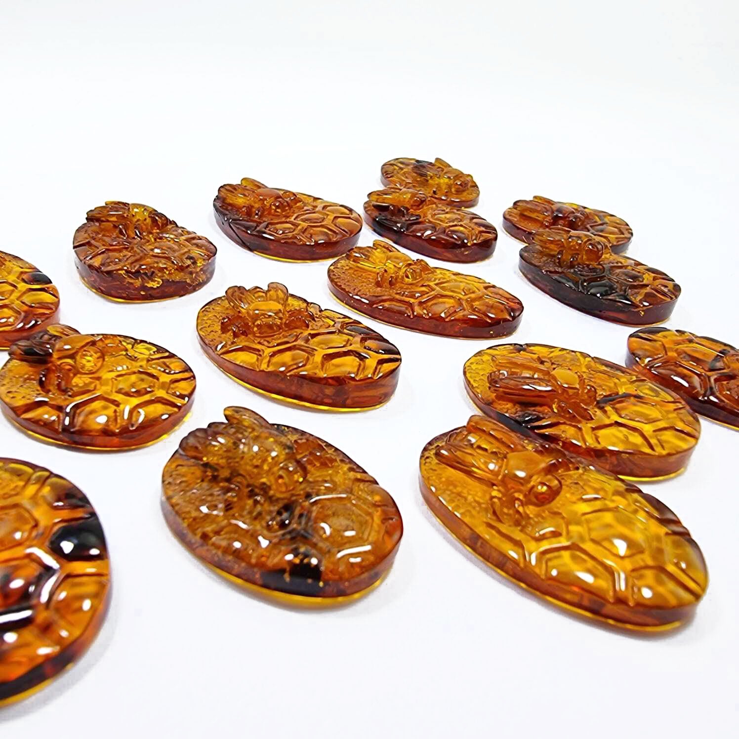 • Carved Bee on honeycomb shape cabochons