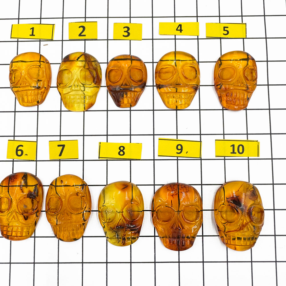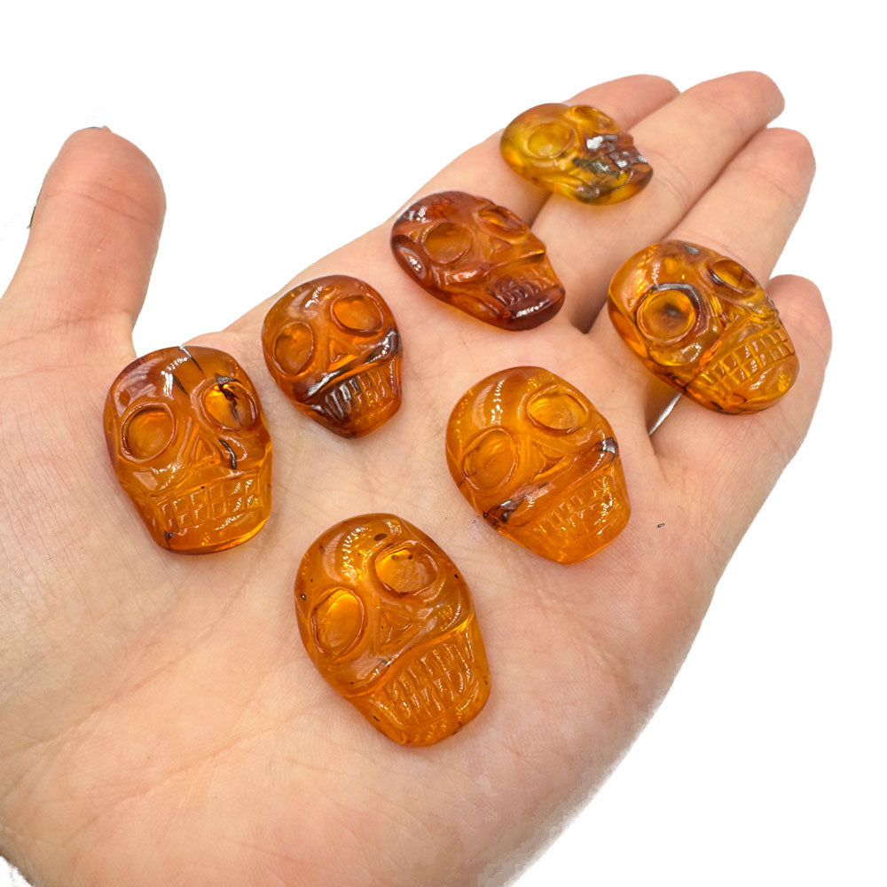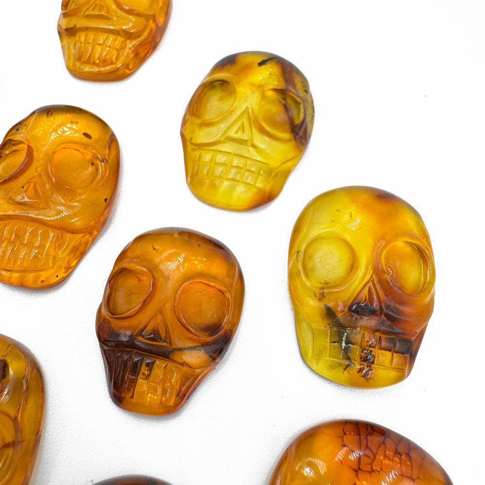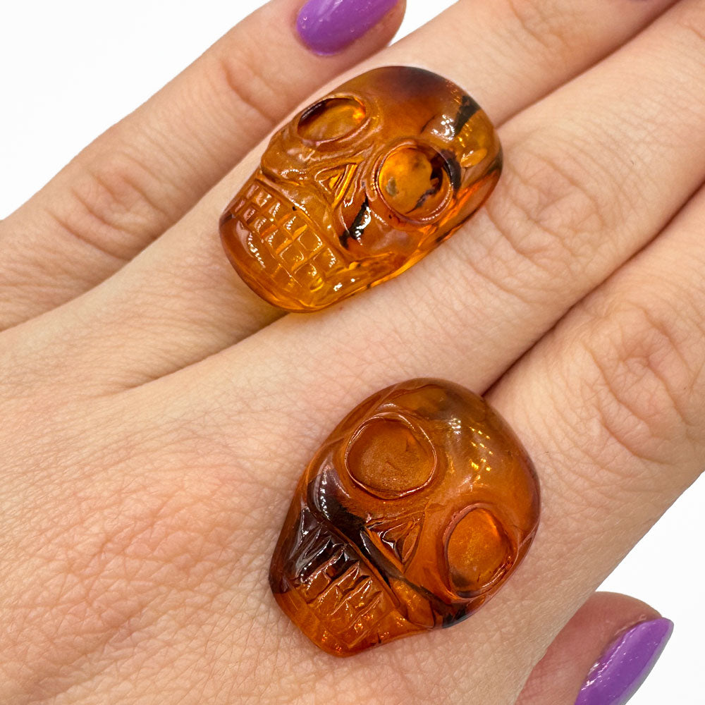 Carved Skull Cognac Color Cabochon Genuine Baltic amber Carved Skull shape cabochons Cognac color The price given per unit * Square size in picture equals 1x1cm...