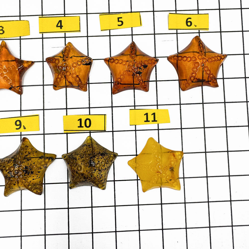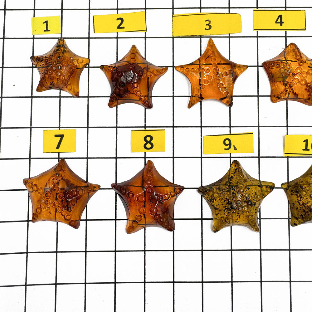 Natural Baltic Amber Cognac Color, Carved starfish Cabochon