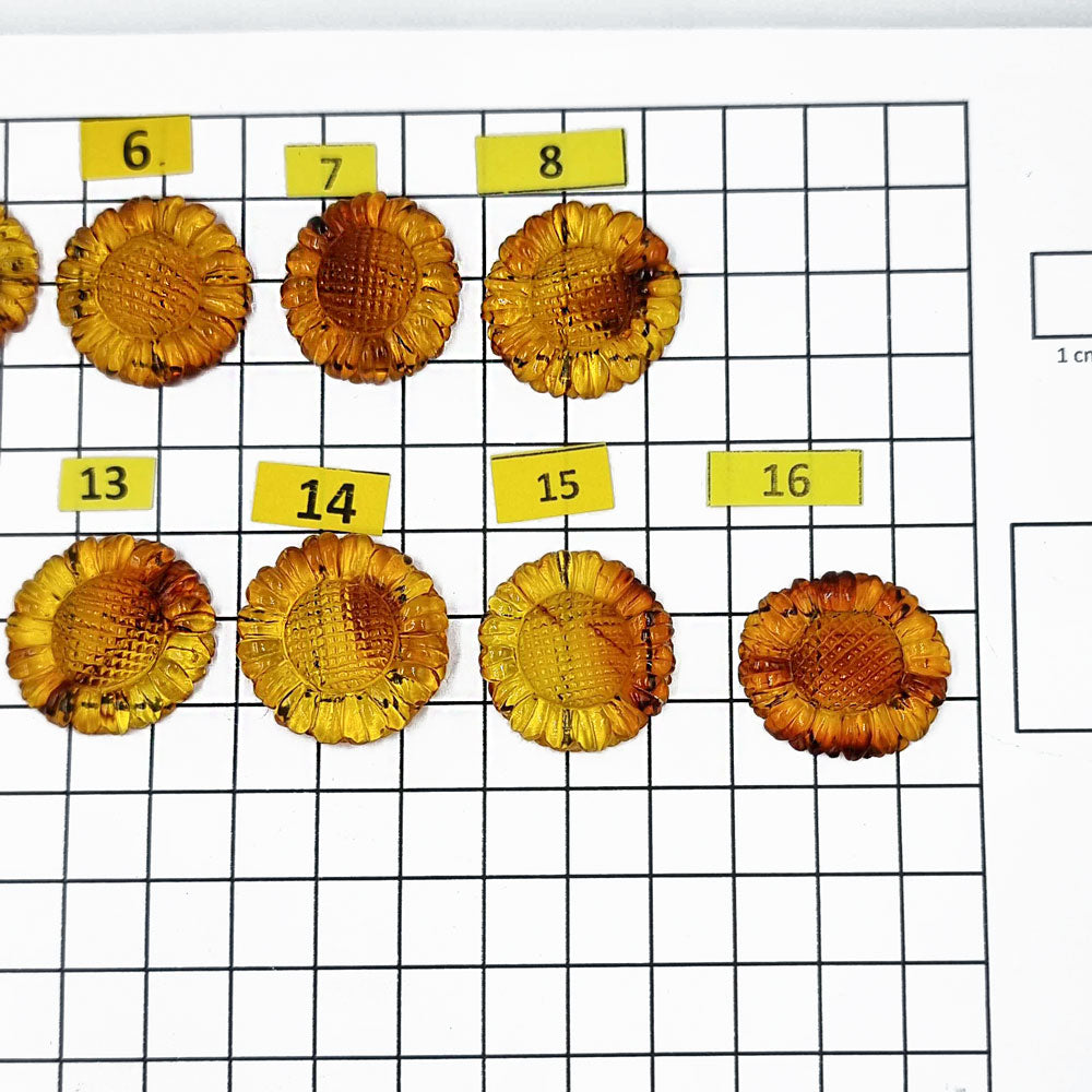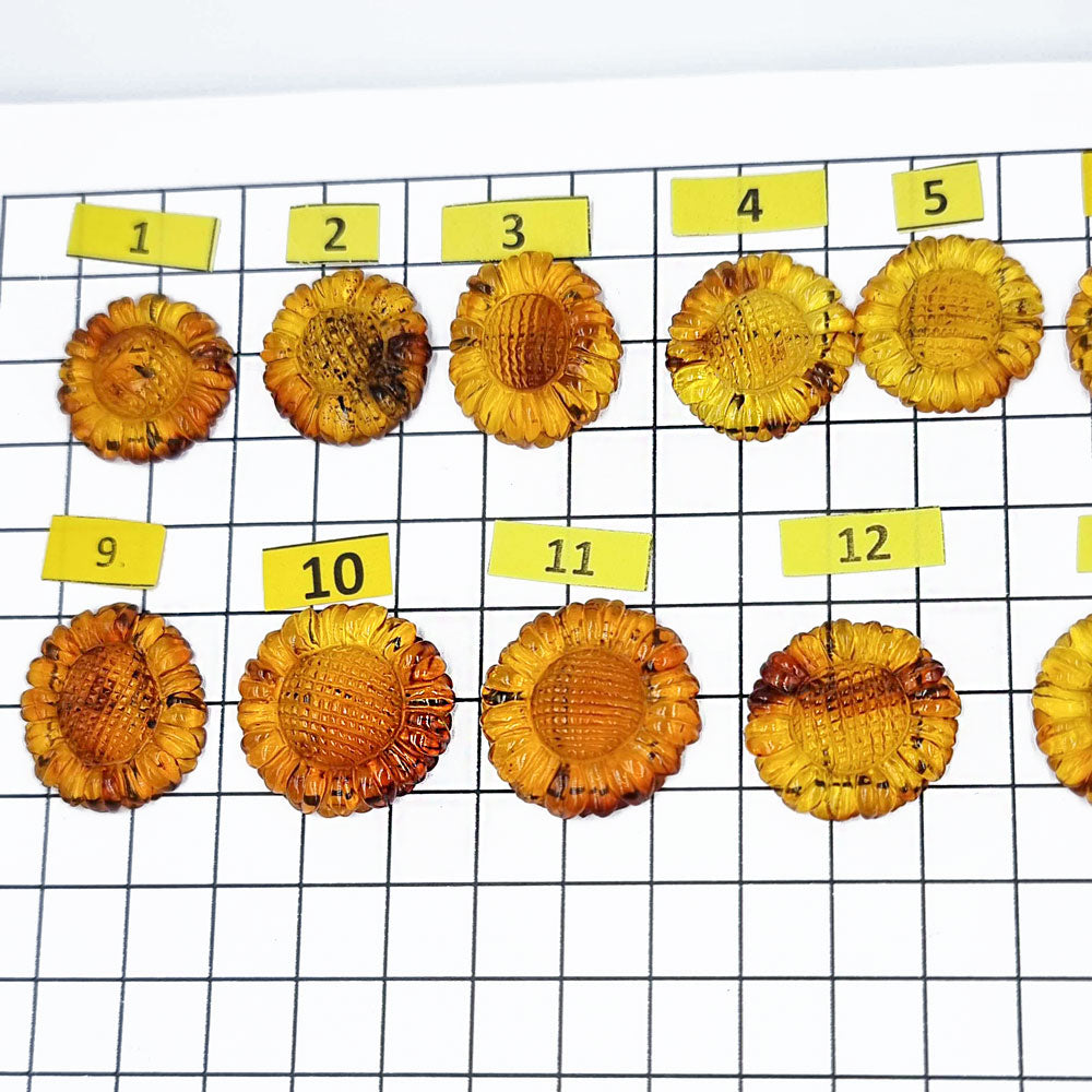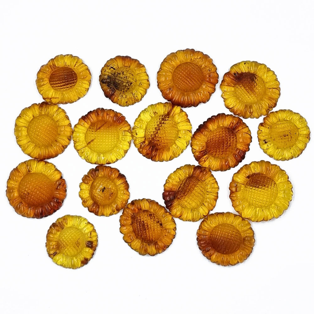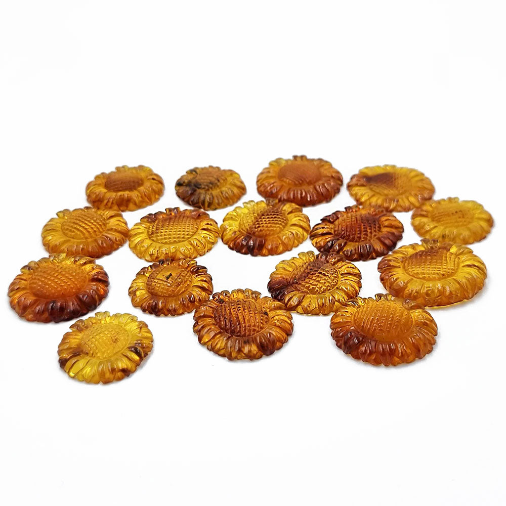 Cognac color carved sunflower free shape cabochons Genuine Baltic amber Carved sunflower shape cabochons Honey color The price given per unit