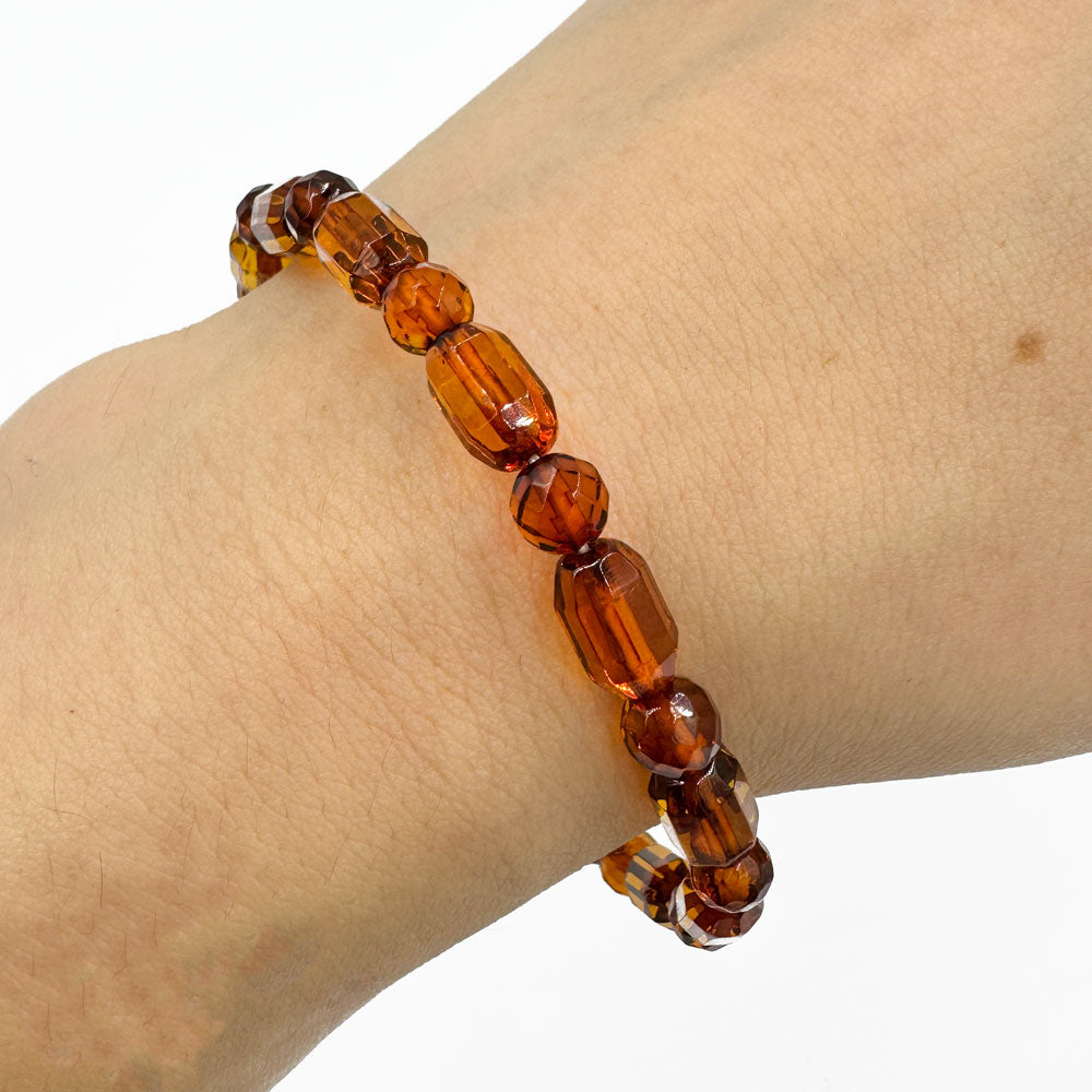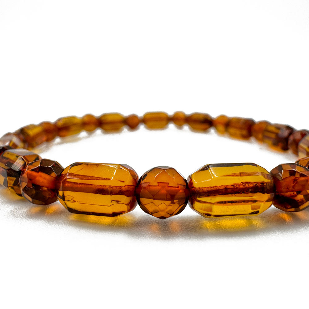 Natural Baltic Amber faceted barrel and round cognac beads