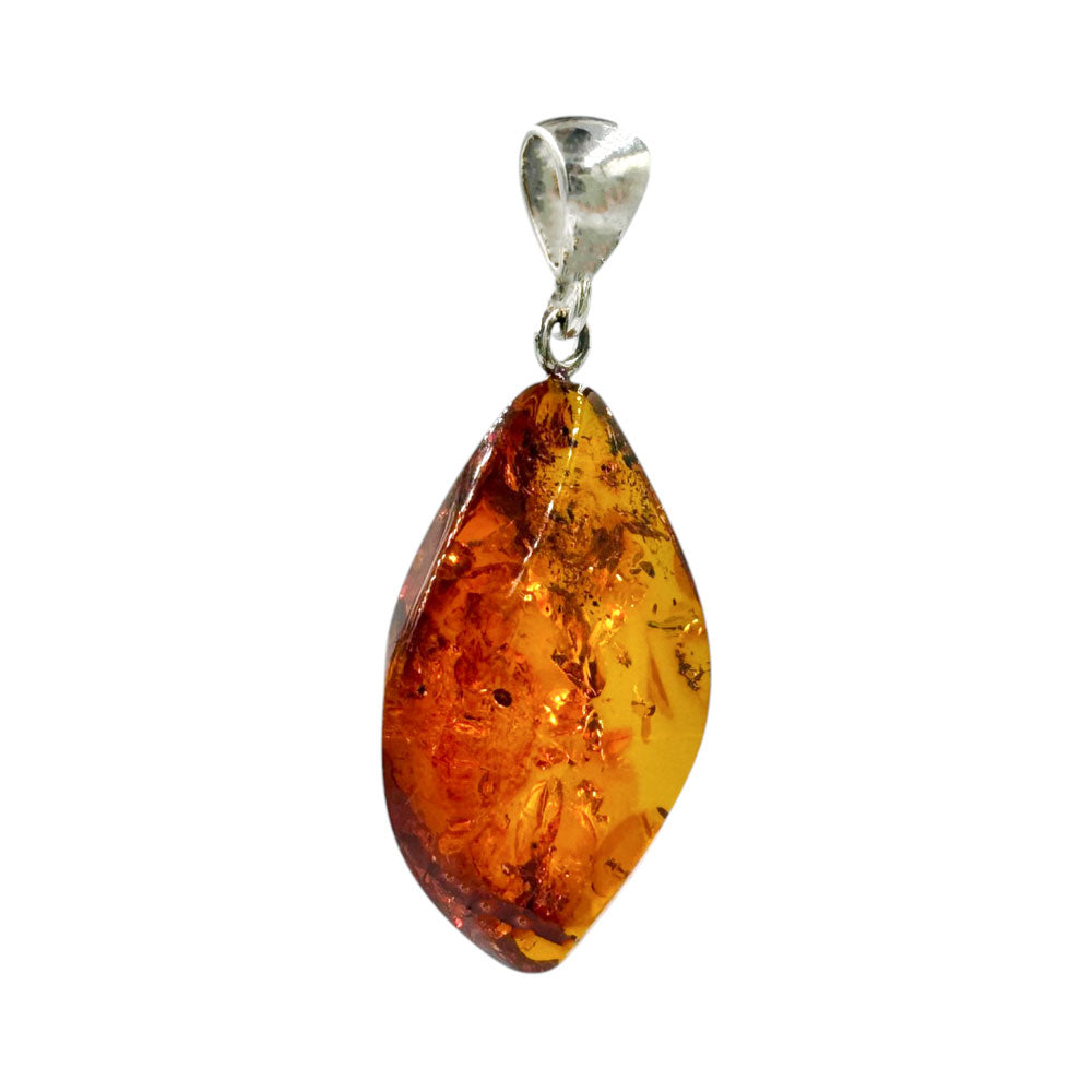Cognac Amber Flame Pendant Sterling Silver