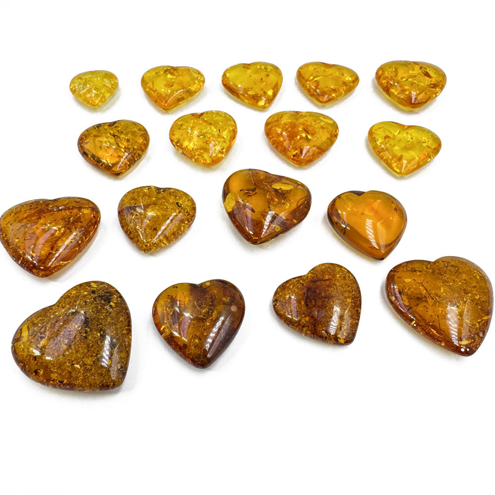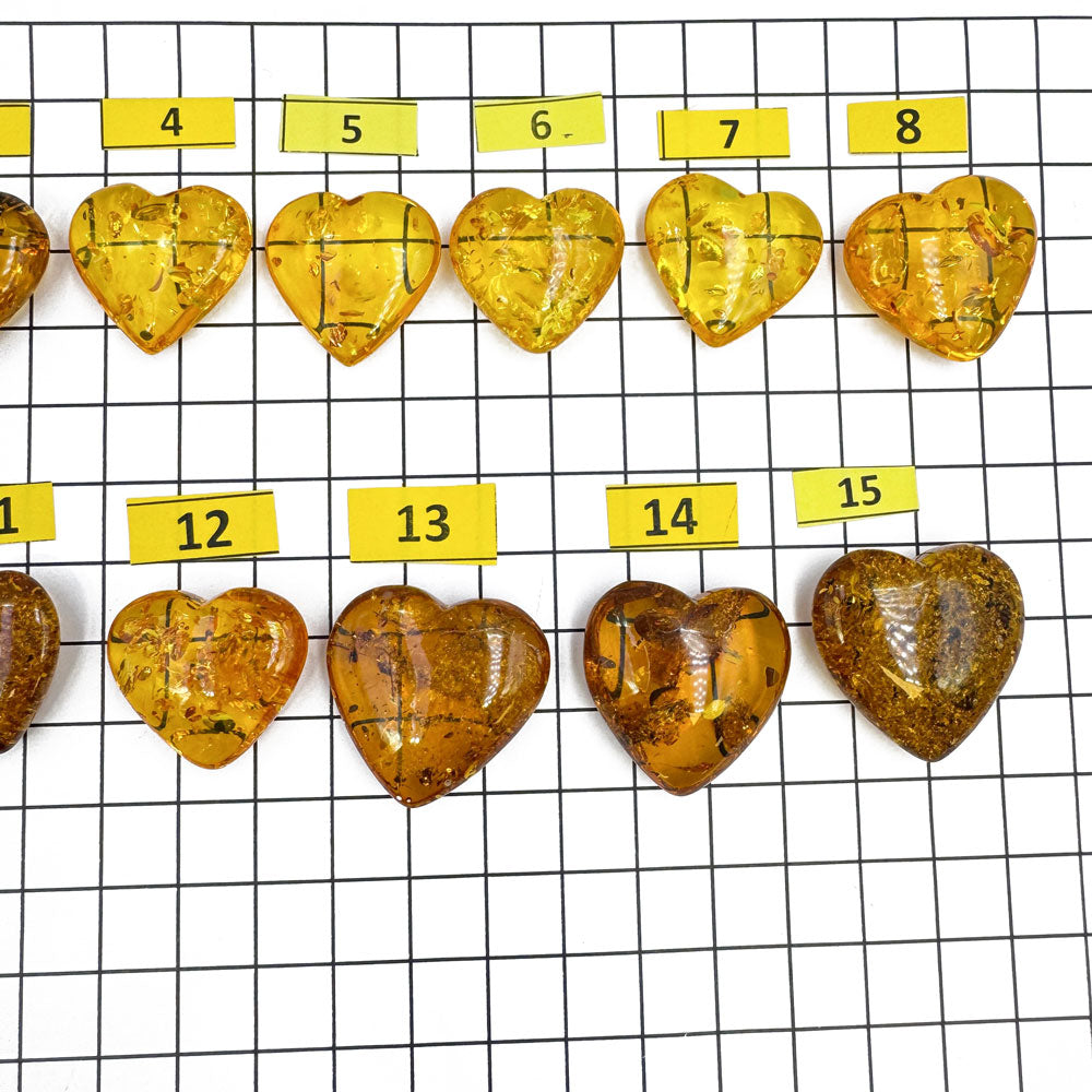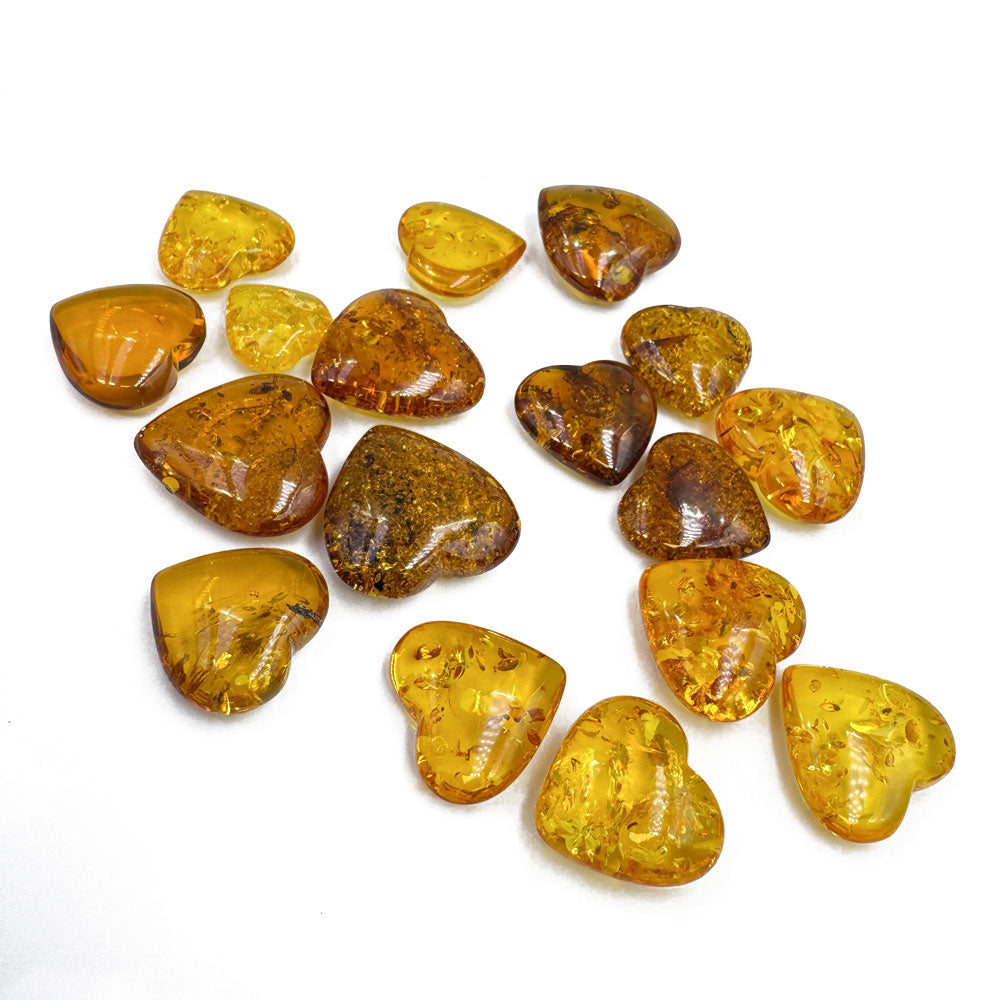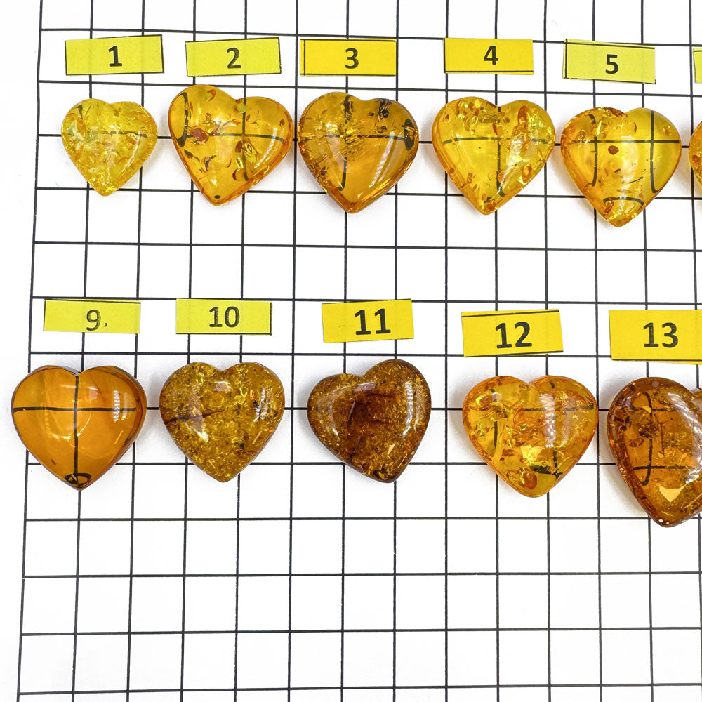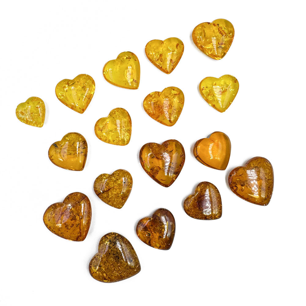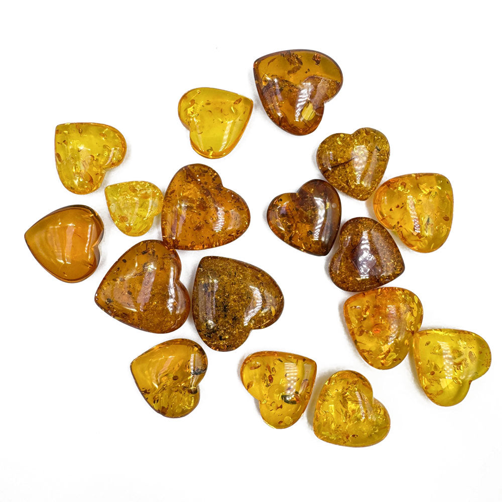 Natural Baltic cognac color amber handmade puffed heart shape cabochons