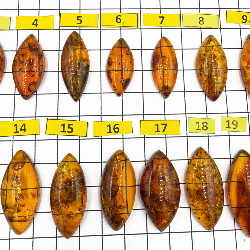 Cognac Amber Marquise Shape Cabochons