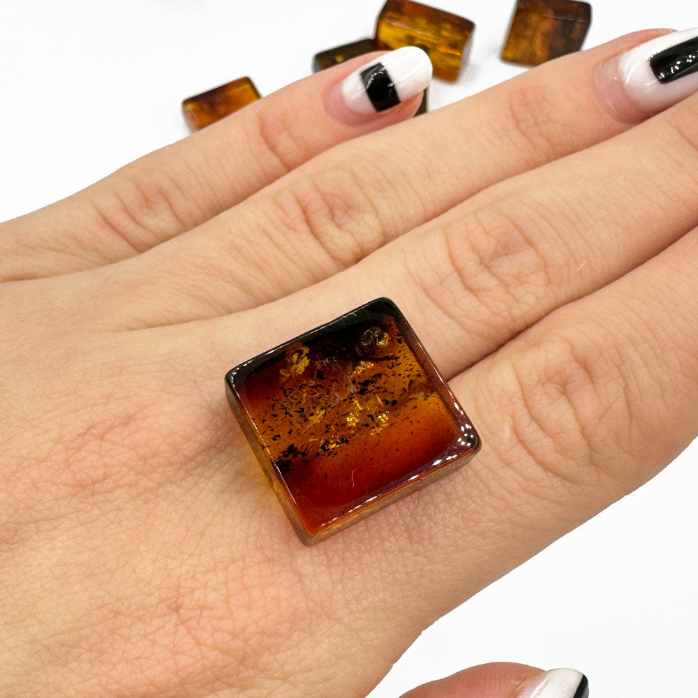 Natural Baltic cognac color amber rectangular free shape cabochons