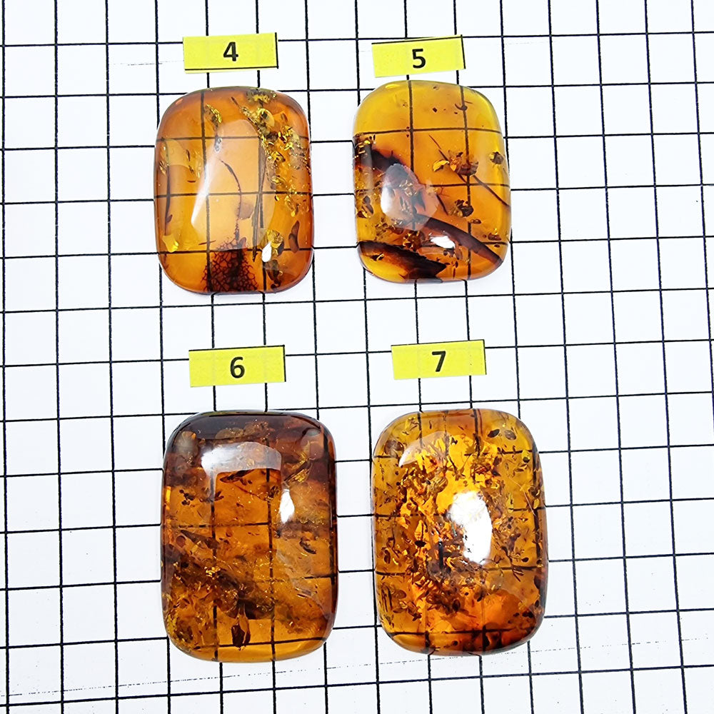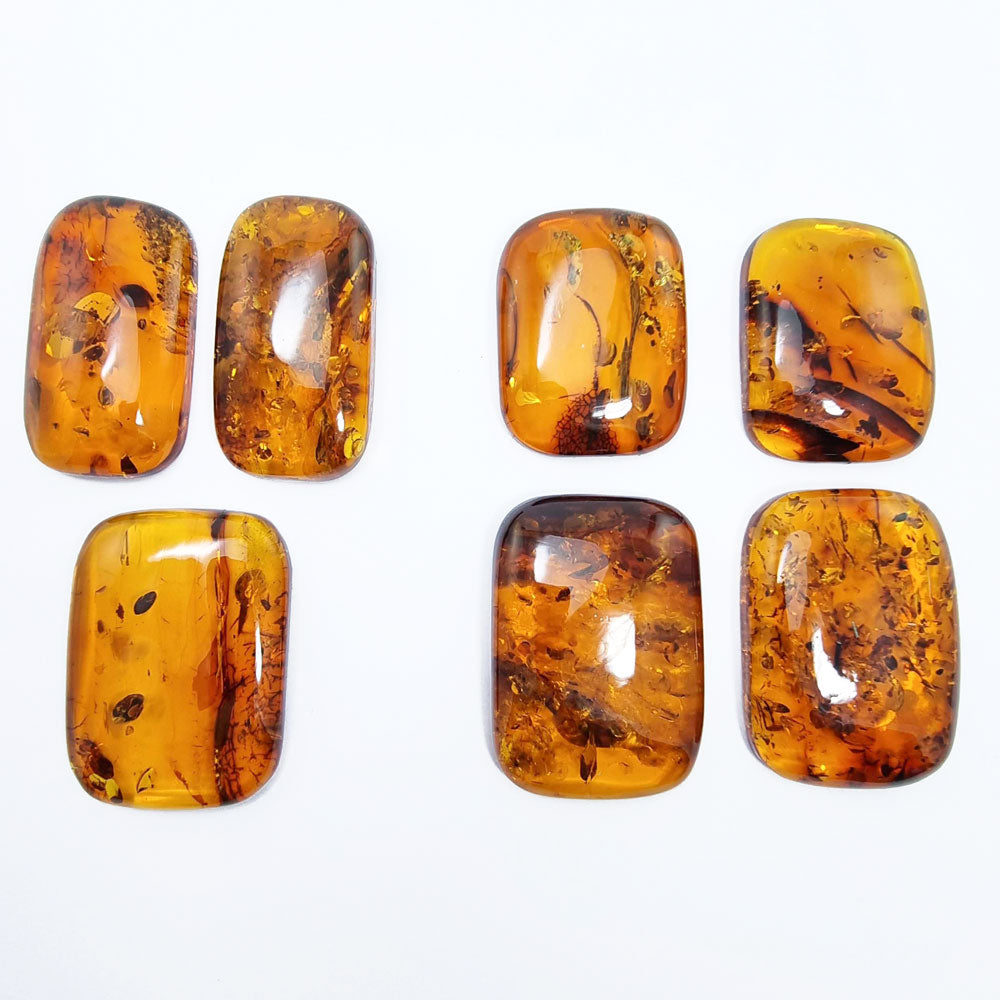 Natural Baltic cognac color amber rectangular free shape cabochons