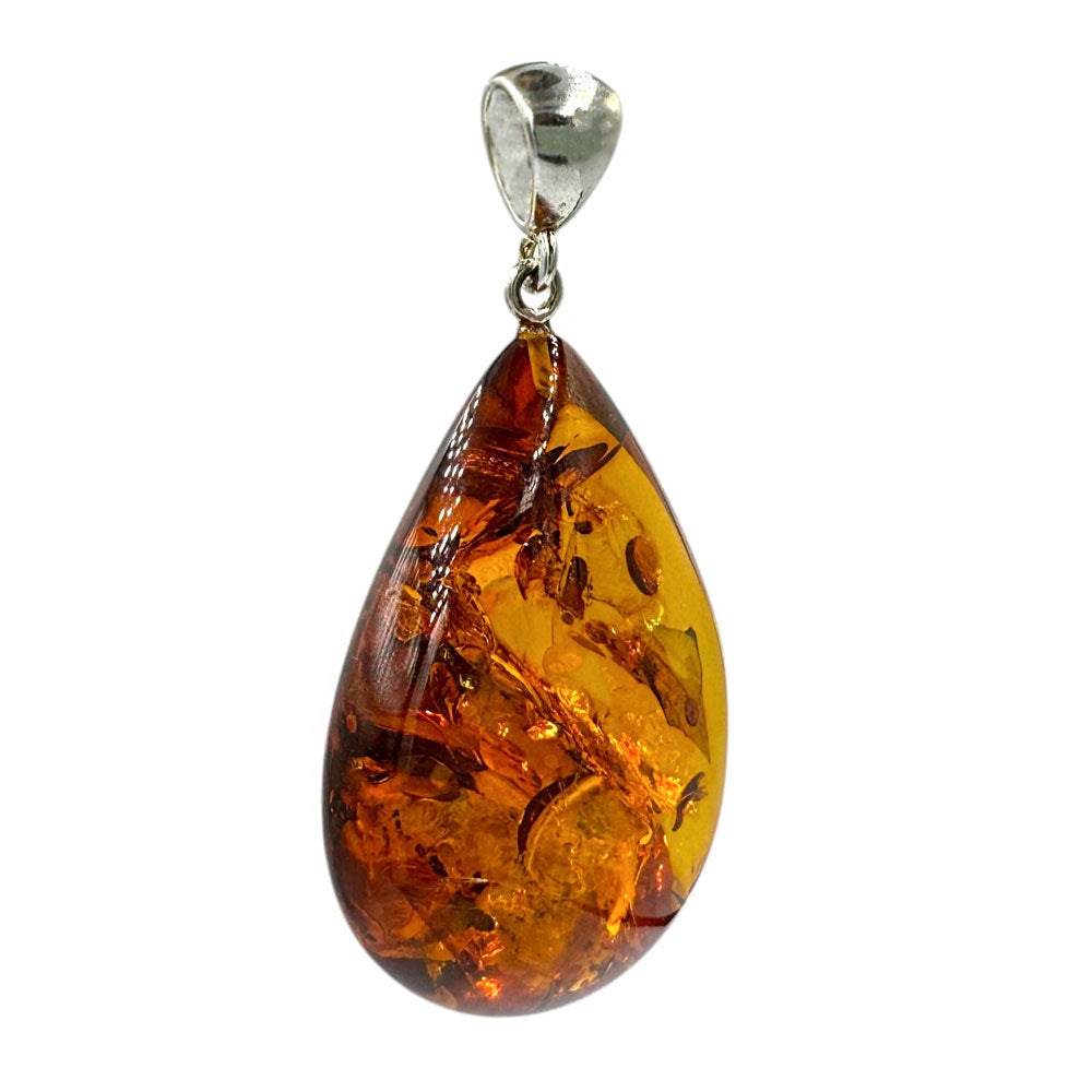 Cognac color drop shape Baltic amber pendant. Drop shape Baltic amber Silver 925 pin 100% nickel and lead free S size: weight ~2-5 grams M...