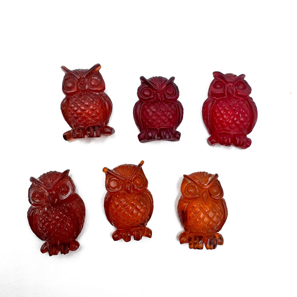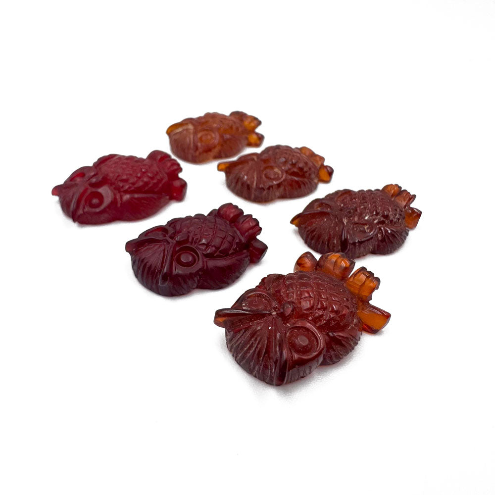 Cognac and Red color Amber Handmade Carved Owl Shape Cabochon