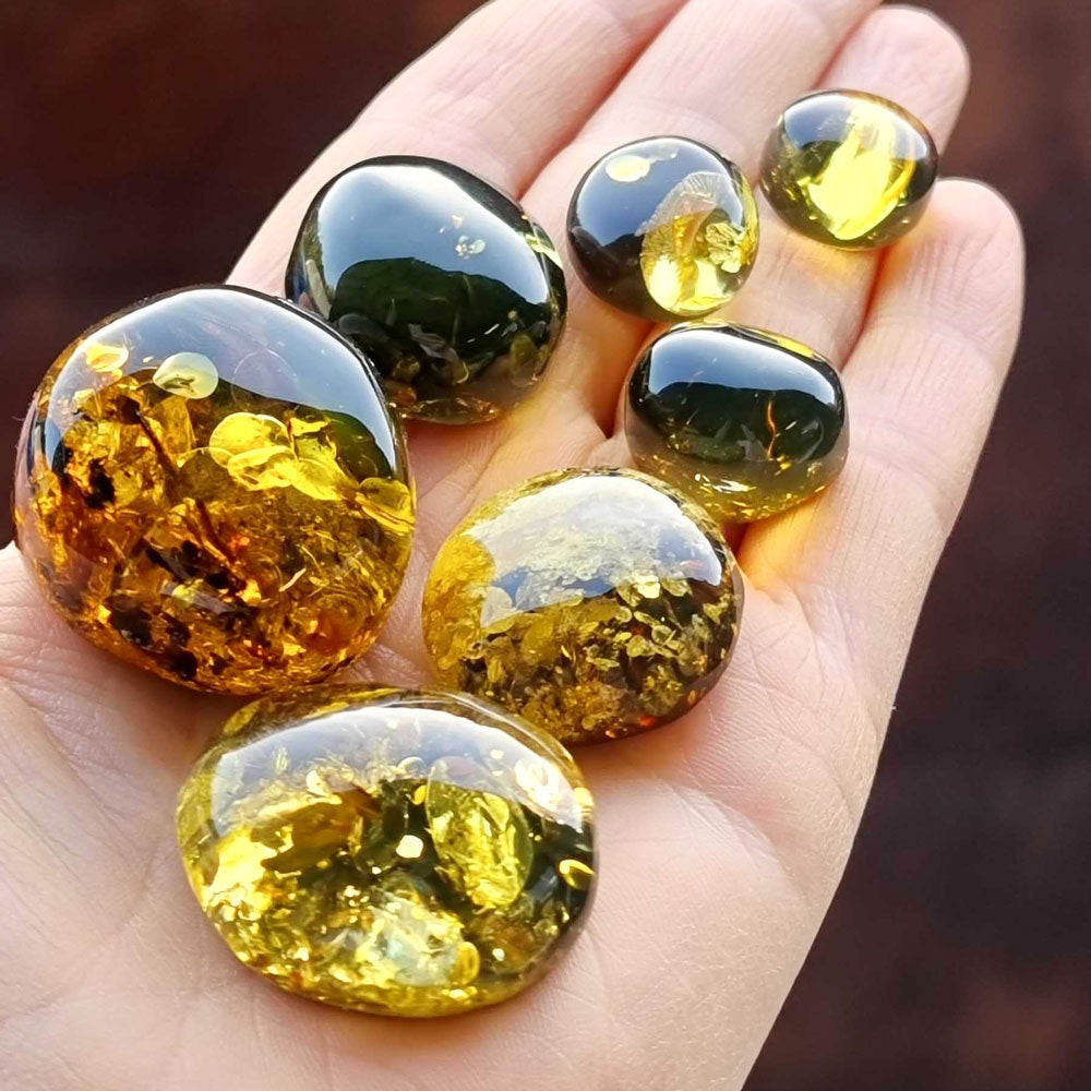 "Earth Stone" Baltic green color amber free shape cabochons Genuine Baltic amber Flat bottom free shape "Earth stone" green color cabochons Various sizes The price...