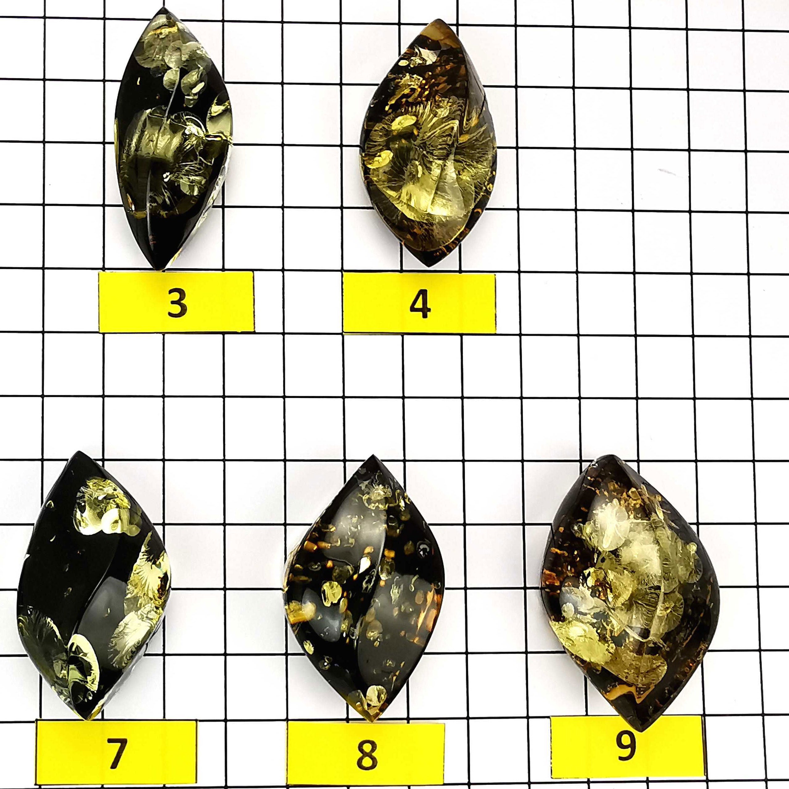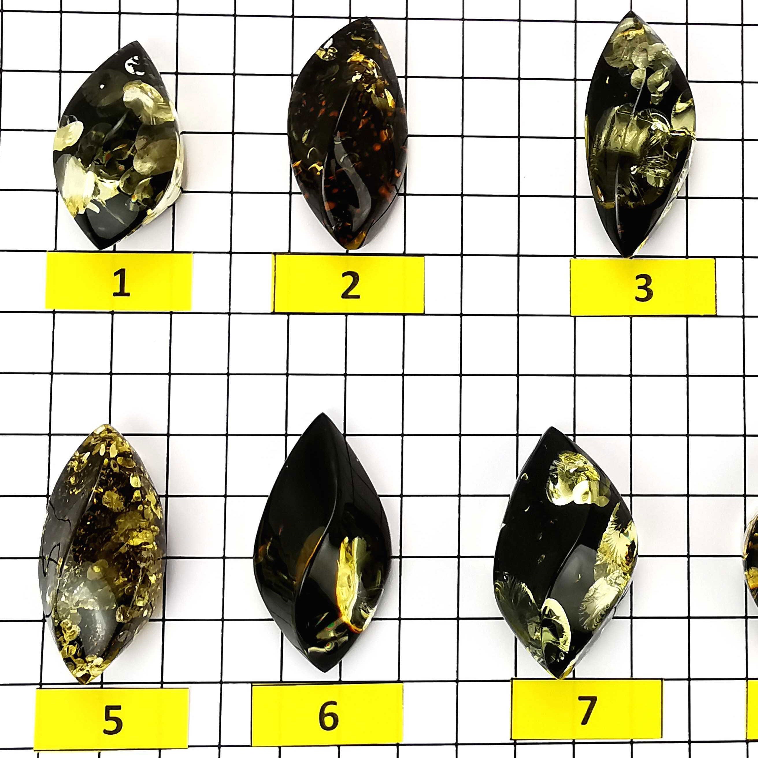 "Earth Stone" Baltic green color amber handmade marquise shape cabochons Genuine Baltic amber Handmade flat bottom Marquise shape "Earth Stone" green color cabochons Various sizes...