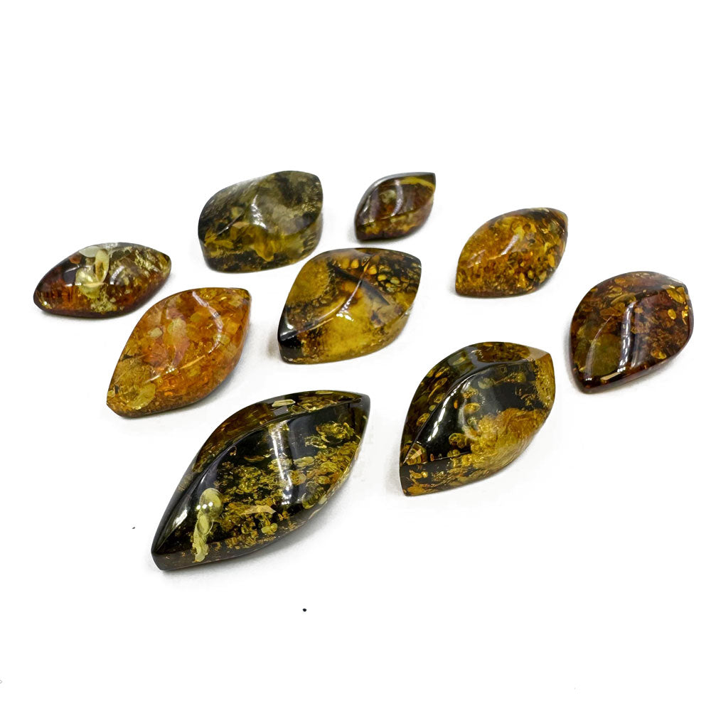 "Earth Stone" Baltic green color amber handmade marquise shape cabochons Genuine Baltic amber Handmade flat bottom Marquise shape "Earth Stone" green color cabochons Various sizes...
