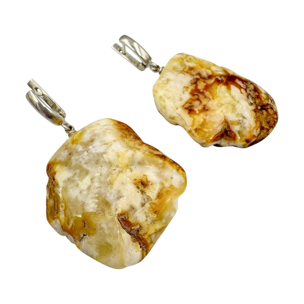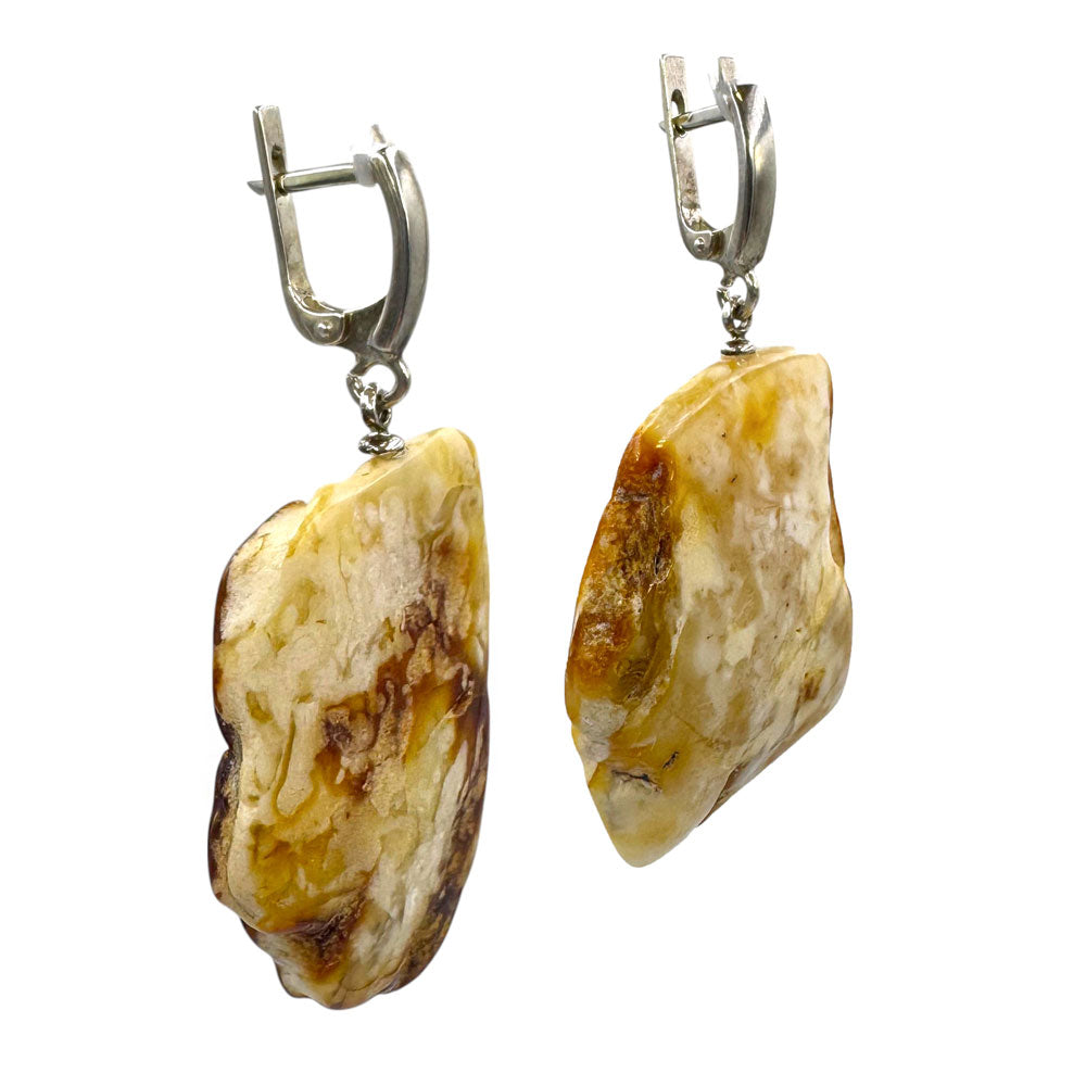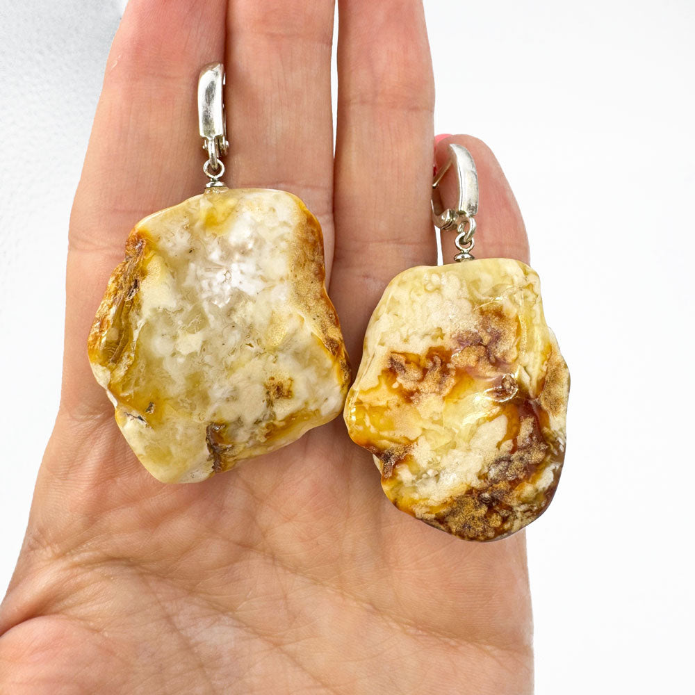 Natural Baltic Amber Milky Color Amber Slab Shape Earrings