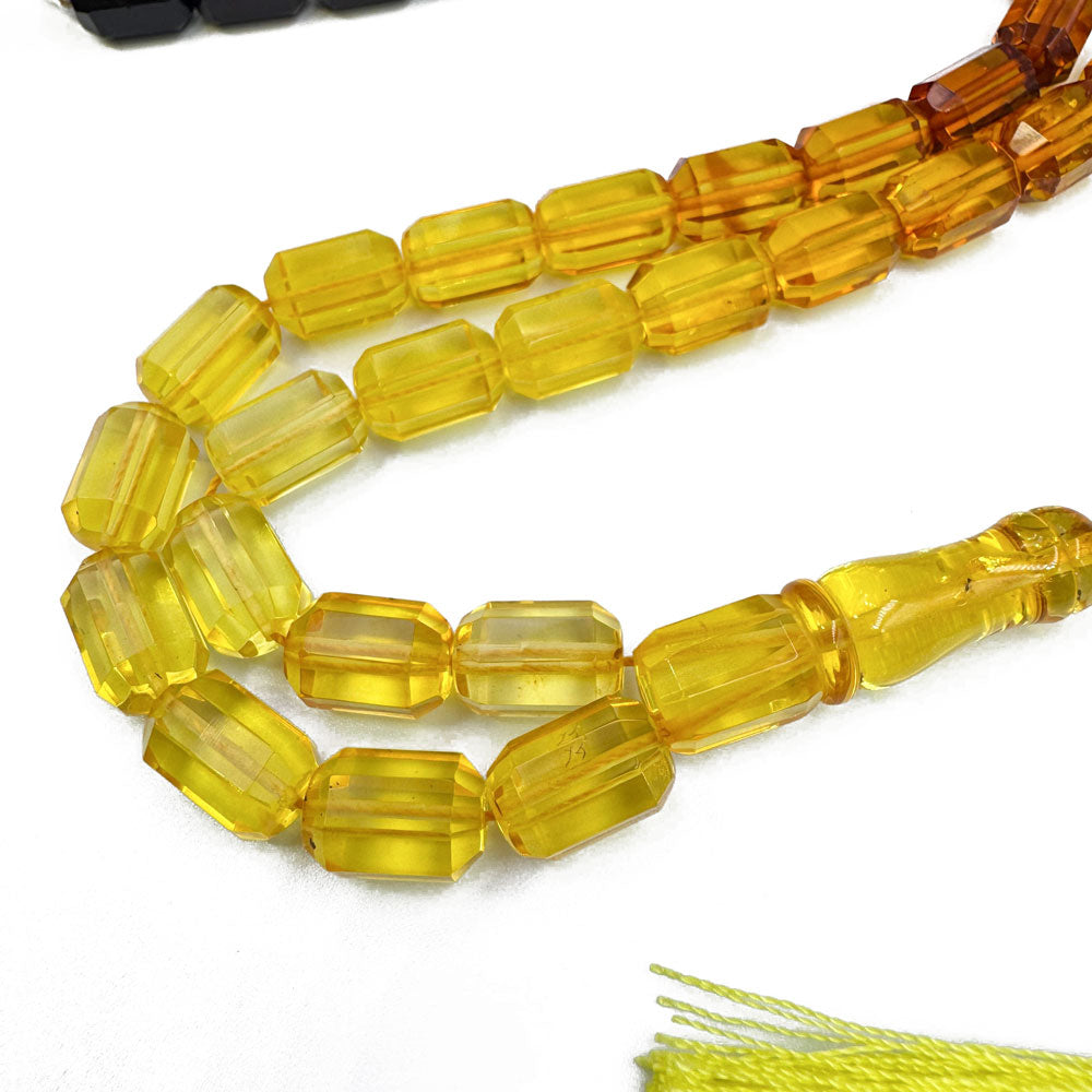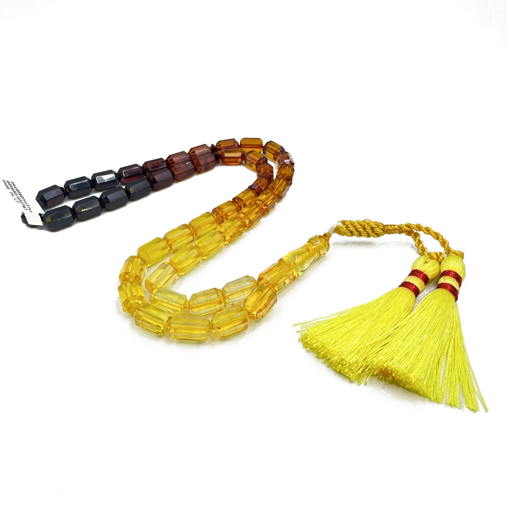 Natural Baltic Amber Gradient Color Islamic Prayer Beads 4 5Faceted Barrel Shape 8 mm