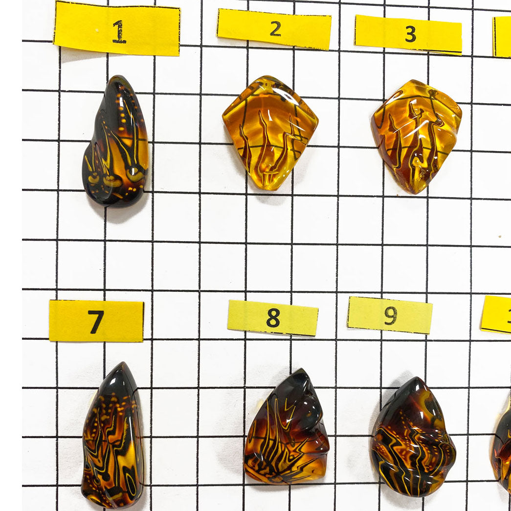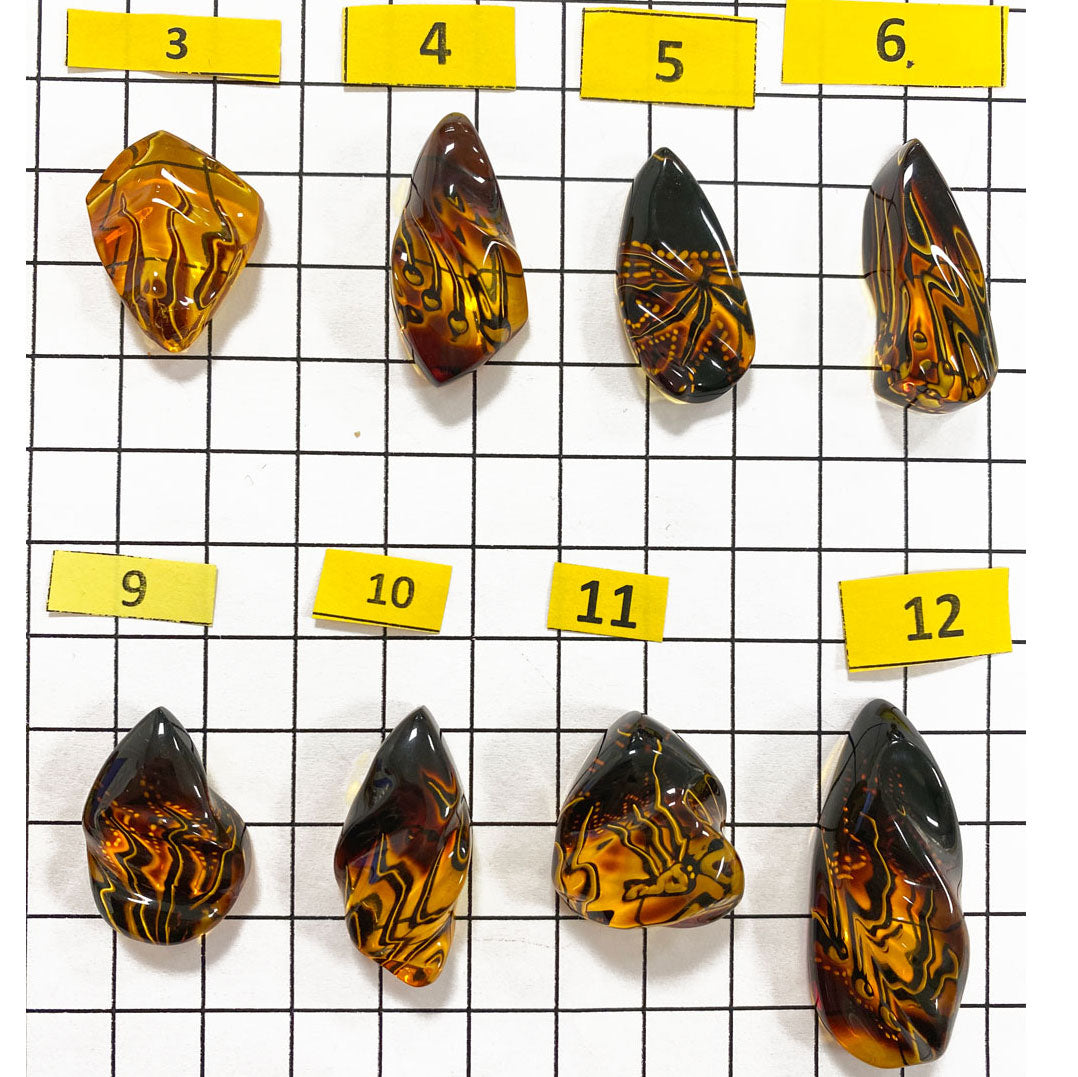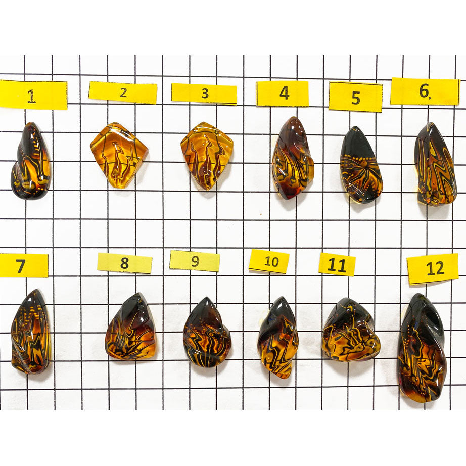 Natural Baltic Amber Gradient Color, carved Free shape Cabochon