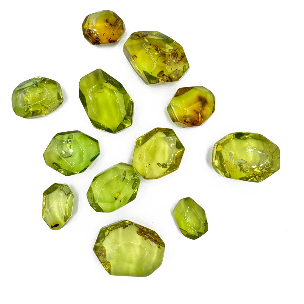 Natural Caribbean Amber Crystal Cut Set Green color Stone