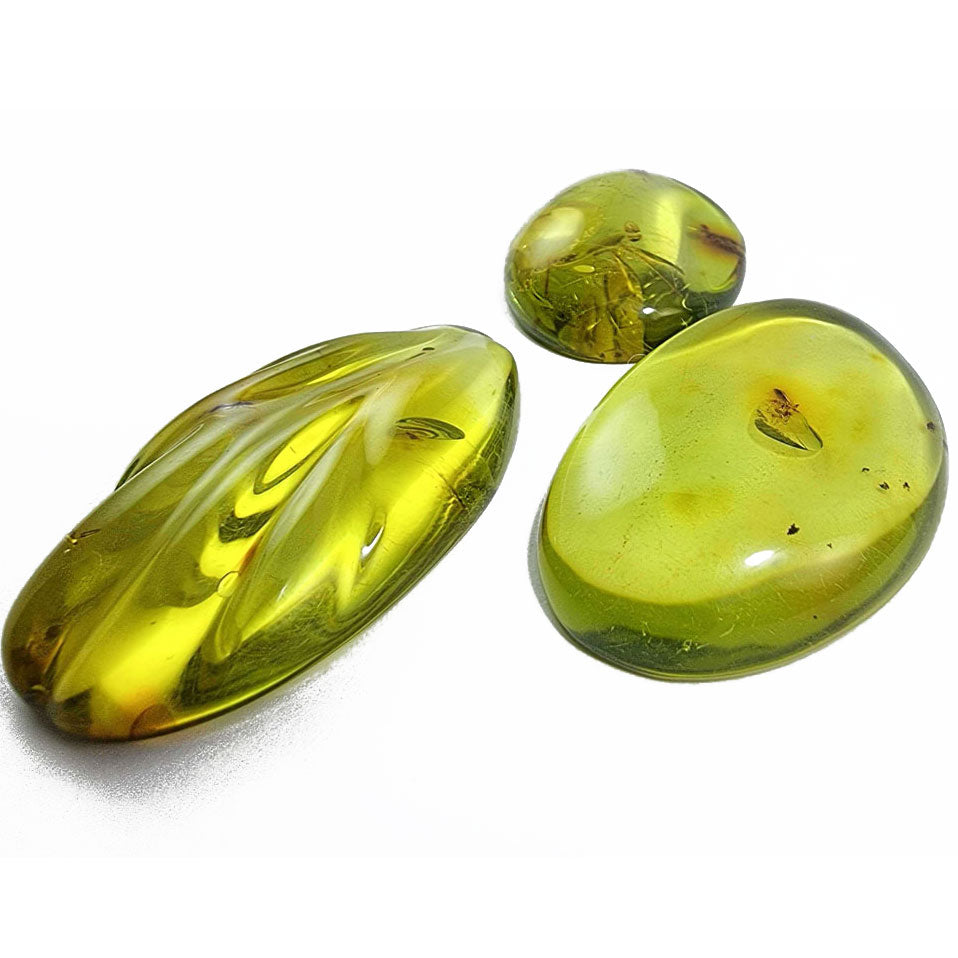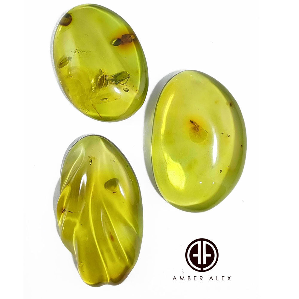 Green Amber Free Shape Cabochons With Insects