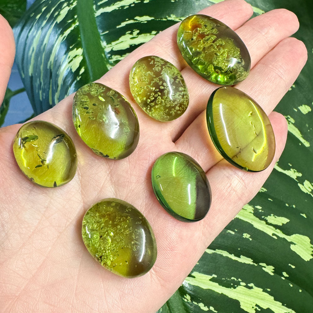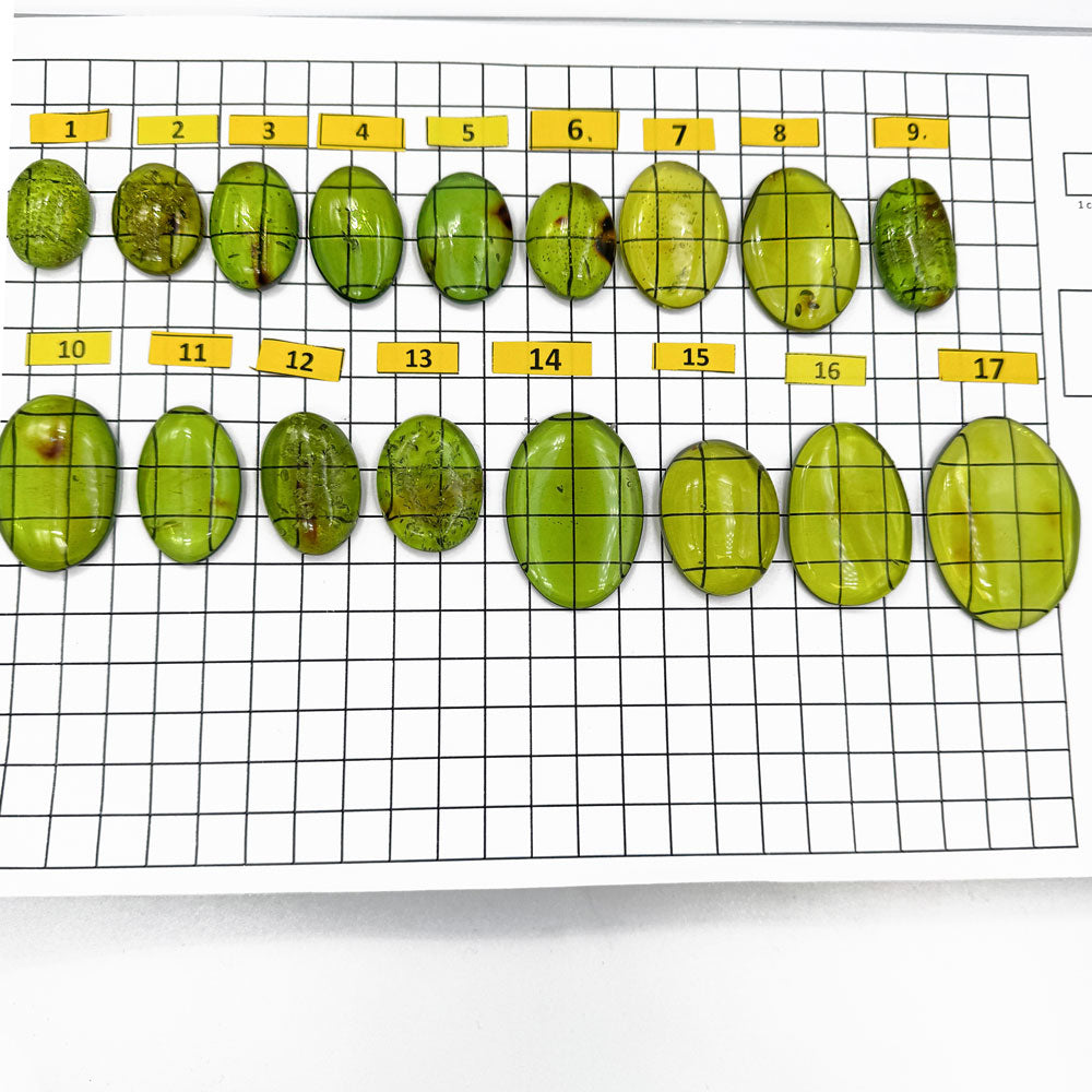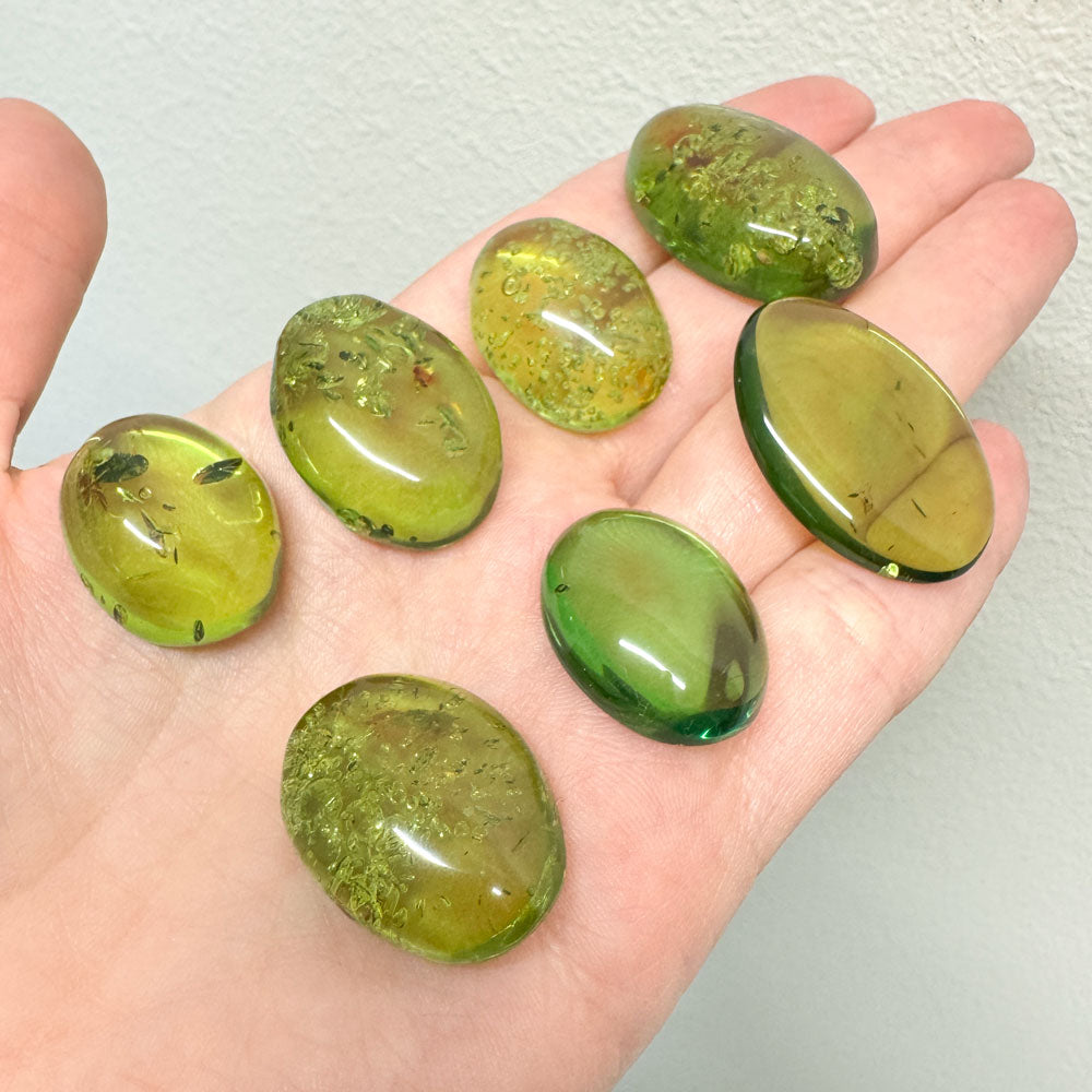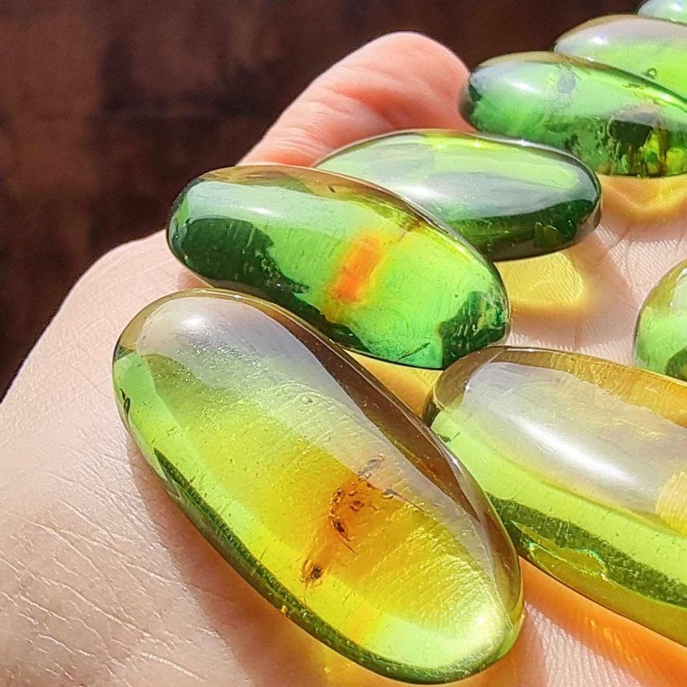 Caribbean green color amber handmade free shape cabochons Genuine Caribbean amber  Flat bottom free shape  Green color cabochons Various sizes The price given per unit  Square...