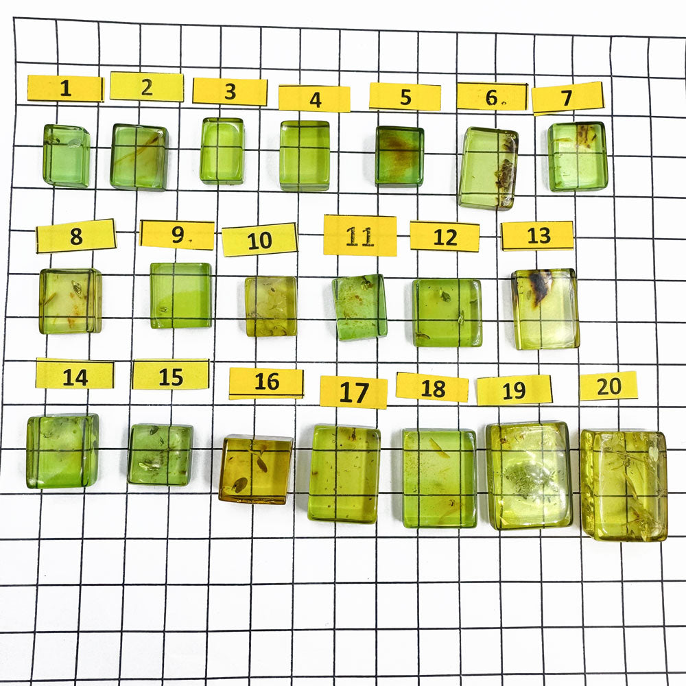 Caribbean green amber handmade rectangular shape cabochons Genuine Caribbean amber  Handmade flat bottom rectangular shape Various sizes The price given per unit Square size in...