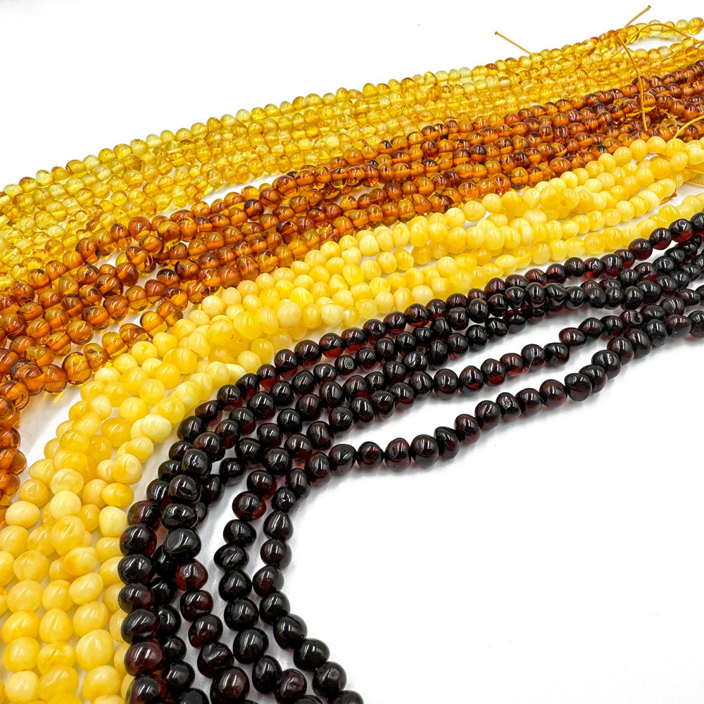 Cognac, lemon, cherry, milky color baroque shape beads