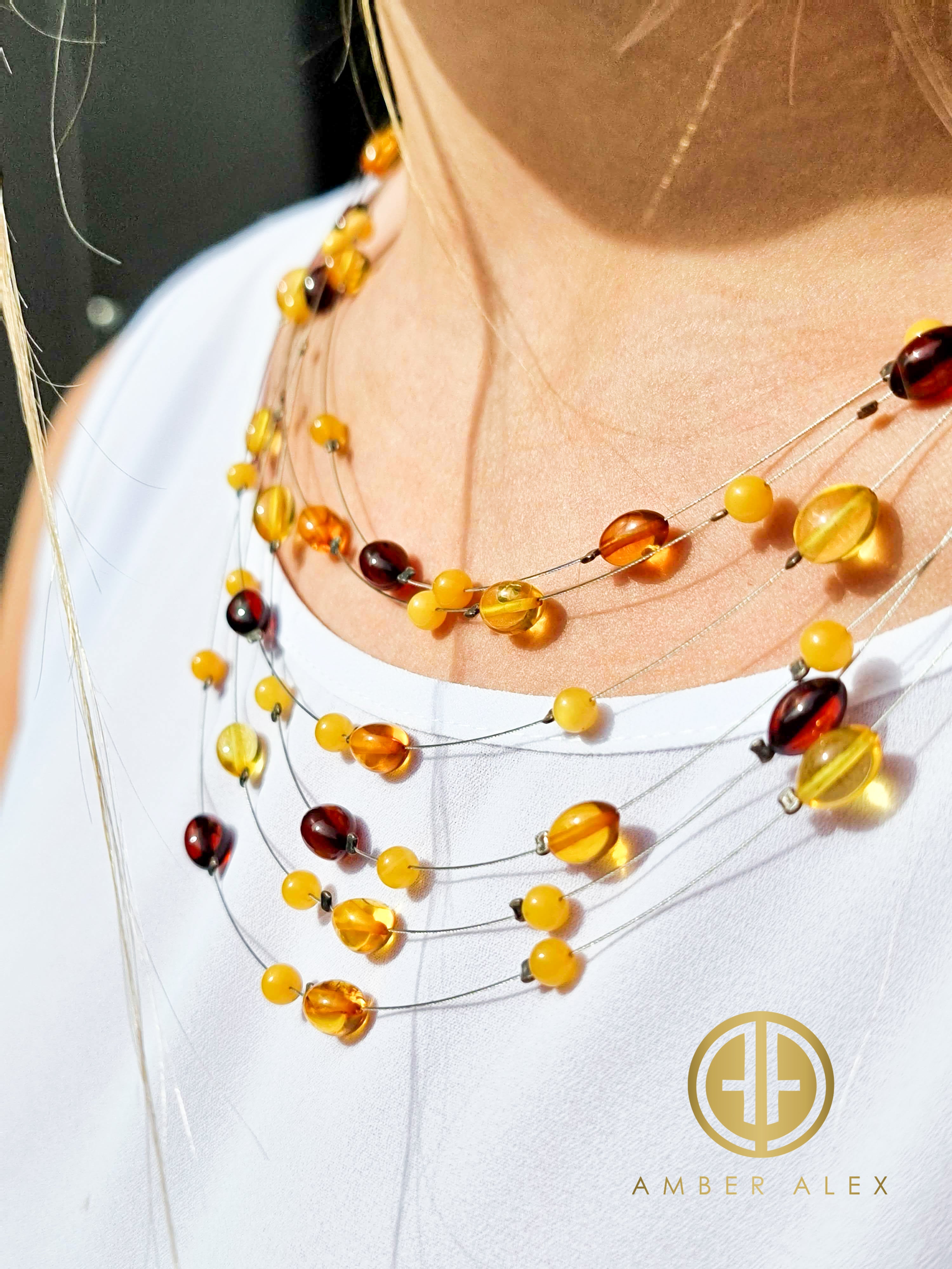 Multi-Color Amber Calibrated Beads Rain Necklace