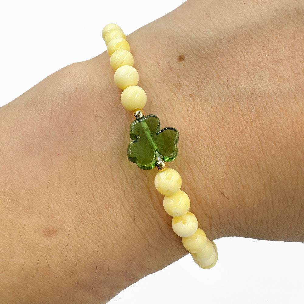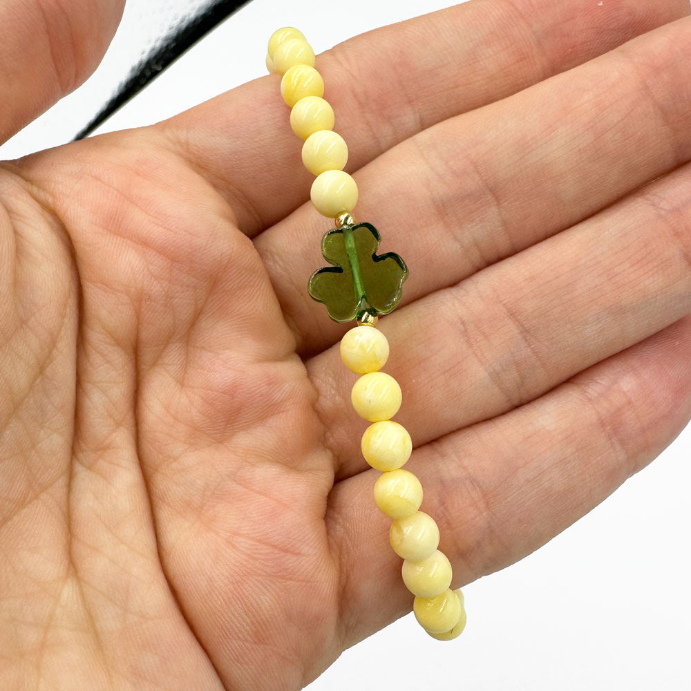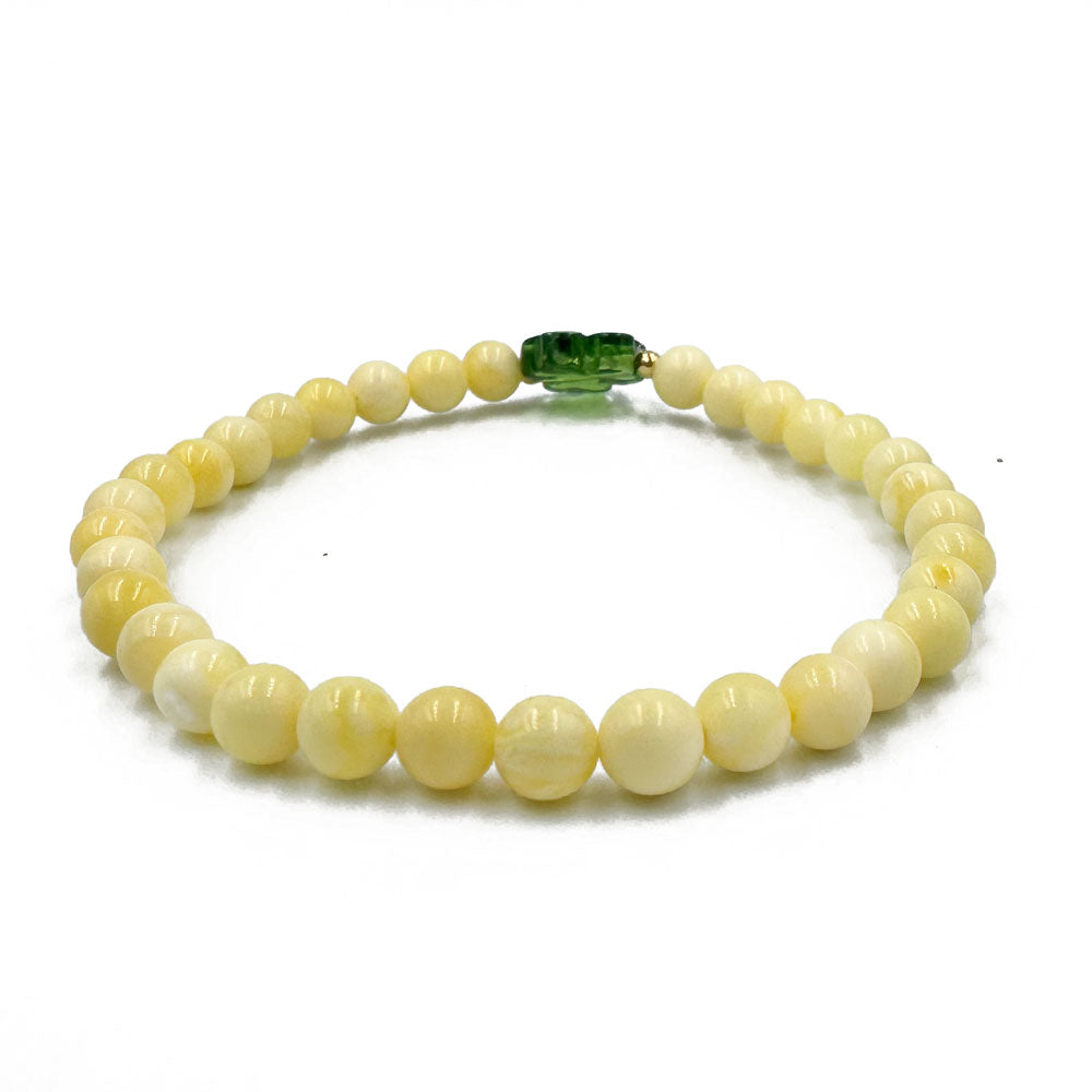 Milky Baltic amber round beads stretch bracelet.