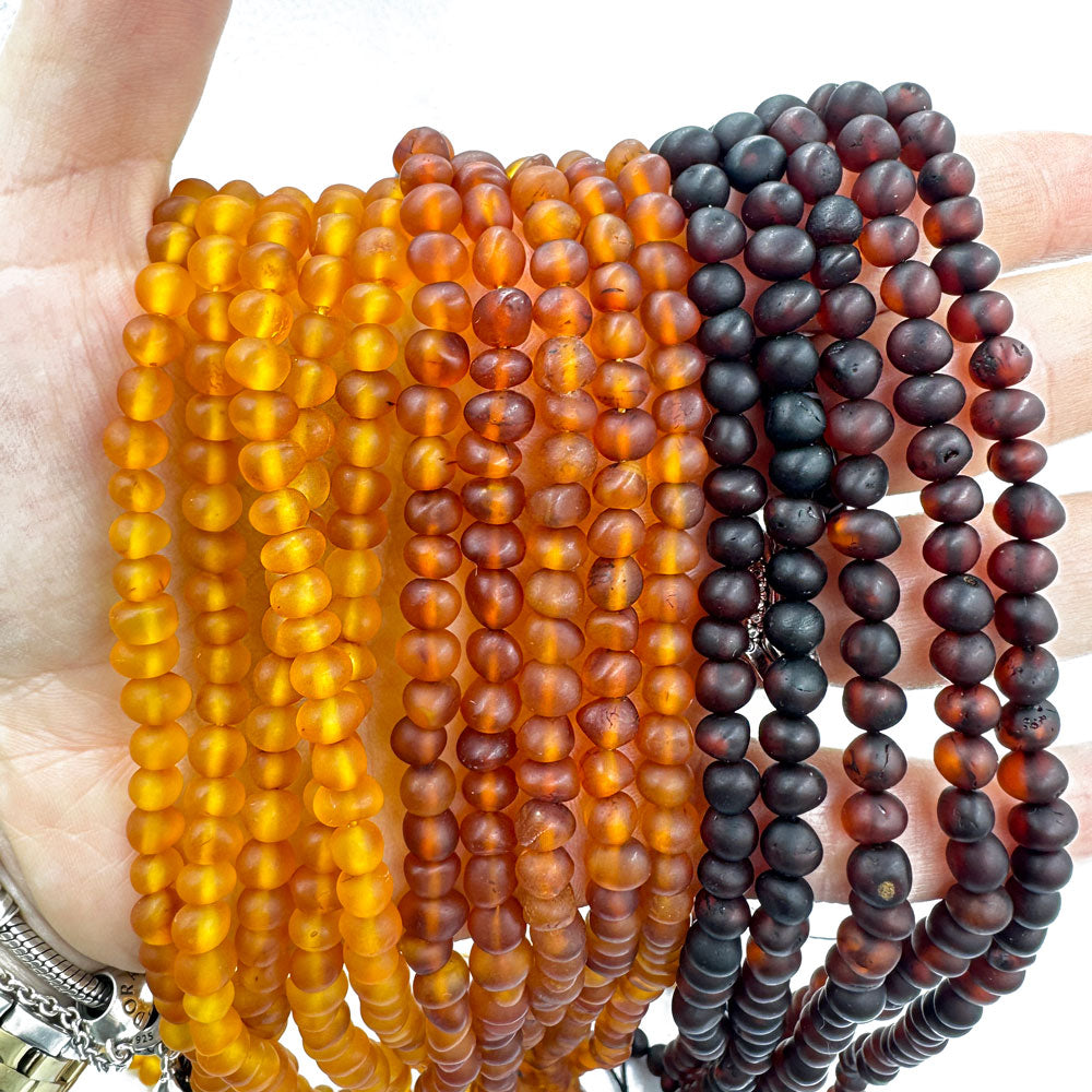 Cognac, lemon, cherry color unpolished baroque shape beads